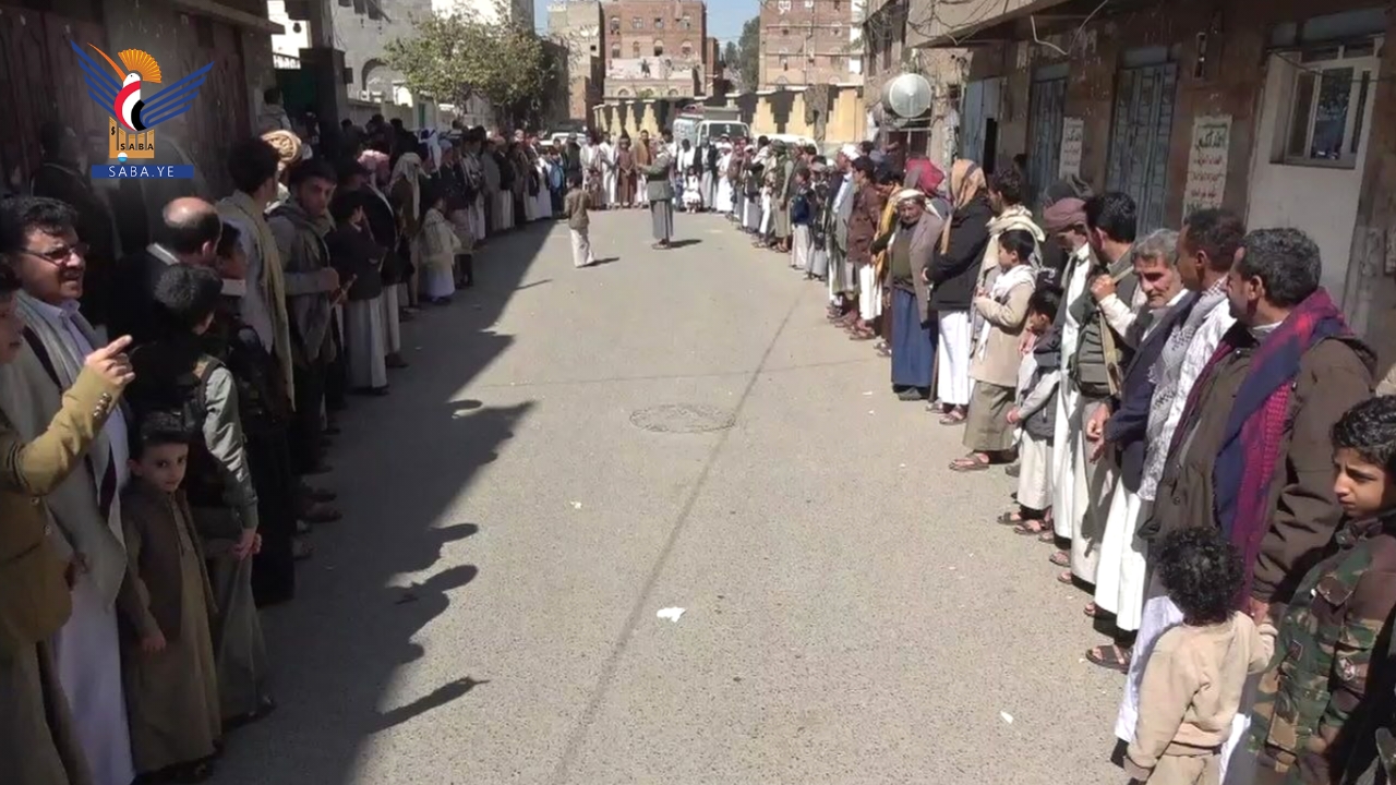 نظم أبناء مديريات أمانة العاصمة اليوم عقب صلاة الجمعة، وقفات حاشدة تنديدا بجرائم العدو الصهيوني بحق الشعب الفلسطيني، وتأكيدا على الجهوزية العالية لمواجهة الأعداء وعملائهم.