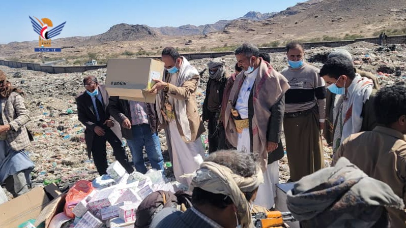 أتلف مكتب الصحة بمدينة رداع، محافظة البيضاء، اليوم ثمانية أطنان أدوية مخالفة وغير مصرح بتداولها ومنتهية الصلاحية.