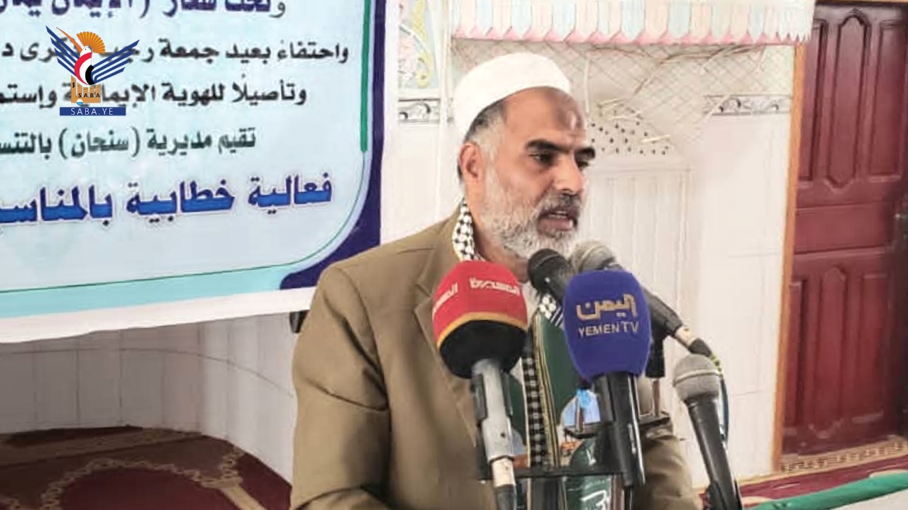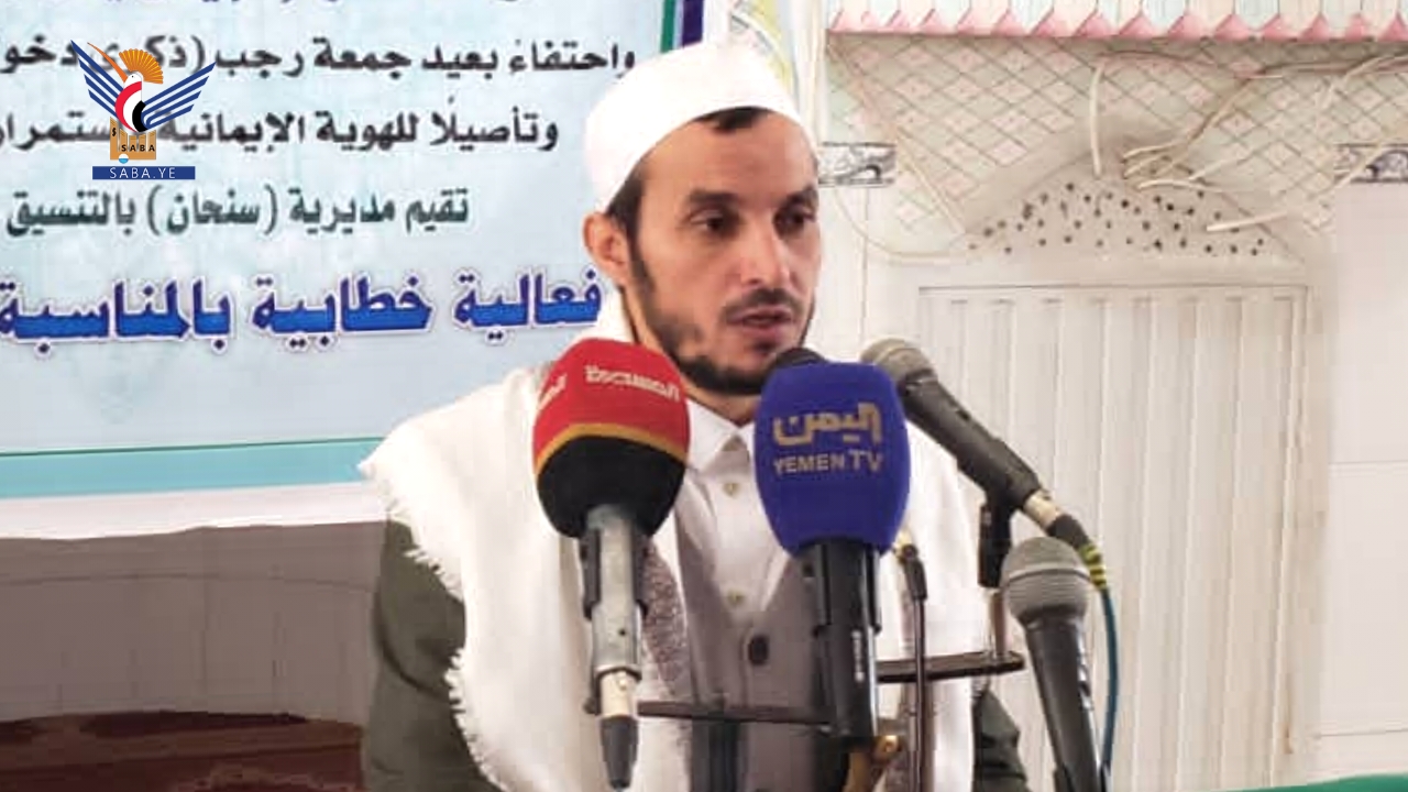نظمّت بمديرية سنحان وبني بهلول، محافظة صنعاء، اليوم فعالية خطابية، انتصارًا لكتاب الله عز وجل، واحتفاءً بقدوم مناسبة عيد جمعة رجب - ذكرى دخول أهل اليمن الإسلام تحت شعار "الإيمان يمان والحكمة يمانية".