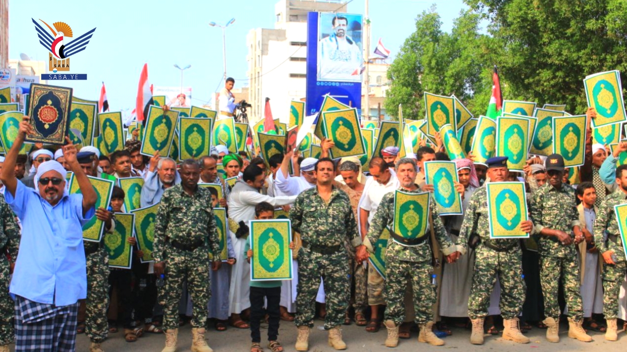 شهدت محافظة الحديدة، اليوم، مسيرات مليونية وحاشدة في 317 ساحة بمختلف المديريات، تنديدًا بالإساءات الأمريكية الصهيونية المتكررة للقرآن الكريم، وانتصارًا لكتاب الله، ونصرة لفلسطين، تحت شعار "نفير واستنفار.. نصرة للقرآن وفلسطين".