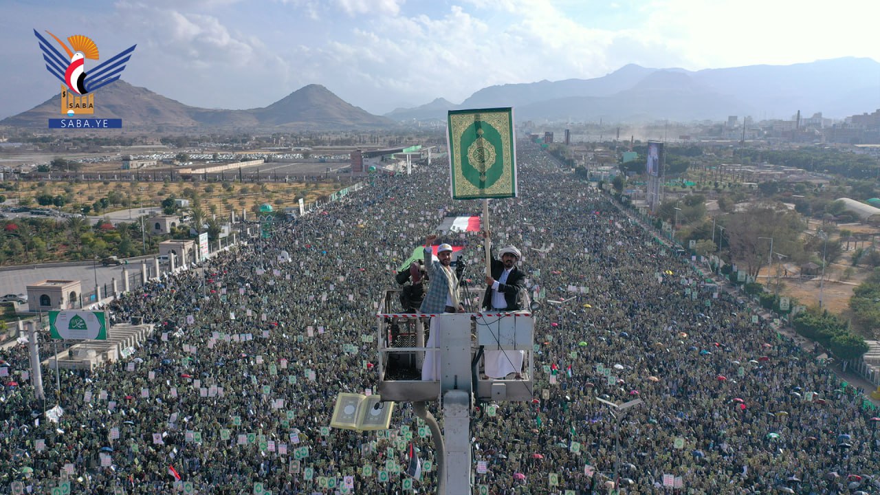 وأضاف "ومن منطلق هذا الإيمان وهذه الحكمة خرجنا لنسمع كل العالم صوتنا الرافض والغاضب لكل الإساءات الأمريكية والصهيونية المتكررة للقرآن الكريم وللمقدسات، ولنؤكد على ثبات موقفنا الإيماني في مساندة الشعب الفلسطيني المسلم المظلوم، وكذا جهوزيتنا العالية واستنفارنا واستعدادنا للجولة القادمة من الصراع مع الأعداء، ومواجهة كل مخططاتهم ومؤامراتهم التي تستهدف ديننا وأمتنا وبلدنا وشعبنا وكل المنطقة".