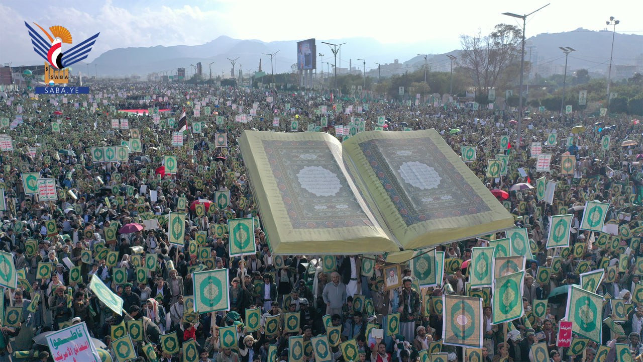 ورفعت الحشود المليونية في المسيرة، المصحف الشريف تعظيما وتقديسا وإجلالا وإكبارا لكتاب الله الخالد ومنهجه القويم، مؤكدة تمسكها به، كونه مصدر عزة وكرامة الأمة وطريق هدايتها ونجاحها في الدنيا والآخرة.