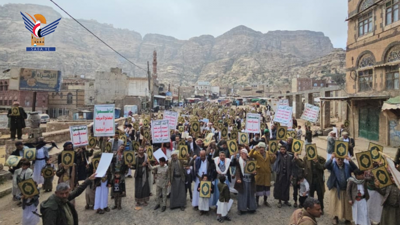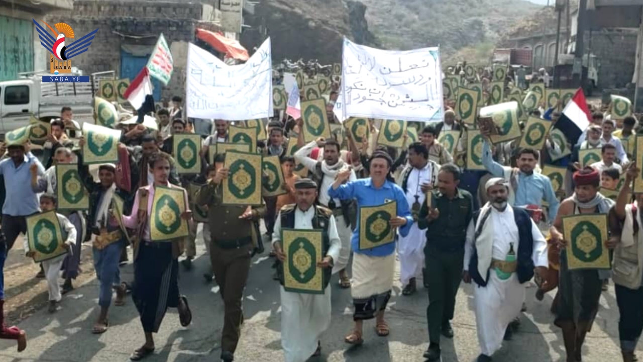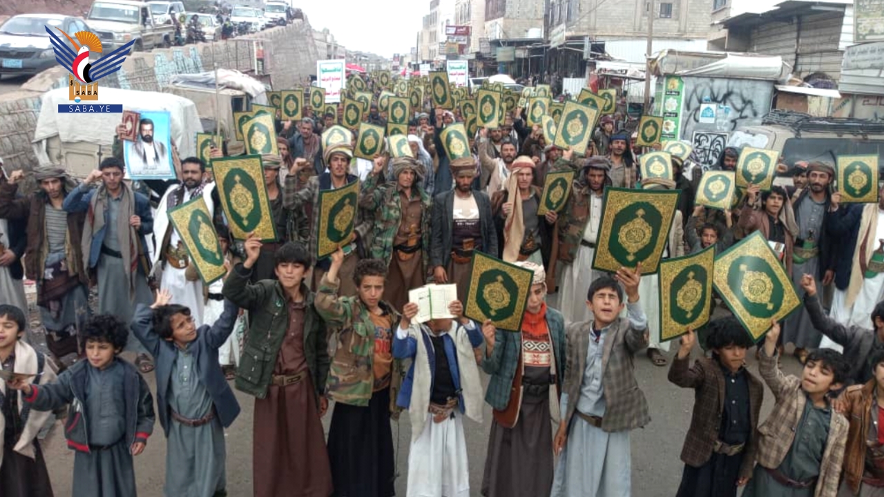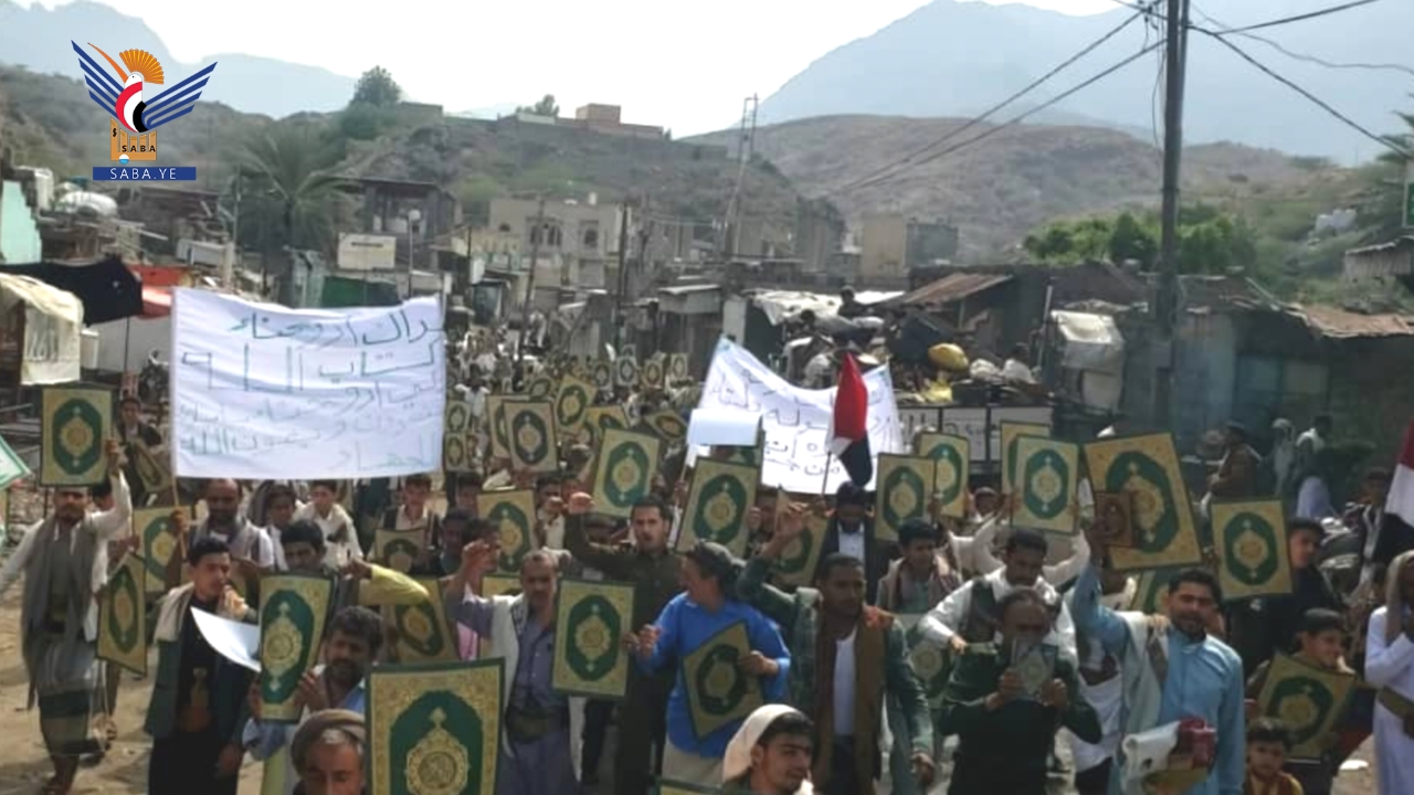 وأكد بيان صادر عن مسيرات المحافظة أن ما يتعرض له القرآن الكريم، وهو أقدس مقدسات الإسلام، من حملات إساءة متكررة وممنهجة، يأتي في إطار حرب يهودية صهيونية شاملة تستهدف الإسلام والمسلمين ومقدساتهم، تقودها أمريكا وإسرائيل وبريطانيا، ويتبعهم أولياء الشيطان الرجيم، في وقت يواصل فيه العدو الصهيوني جرائمه اليومية في فلسطين، واعتداءاته على لبنان، واستباحته للأراضي السورية، وتهديداته لليمن، ومؤامراته على المنطقة بأسرها، بدعم أمريكي وبريطاني مباشر، وفي ظل تخاذل عربي وصمت وتواطؤ دولي مخزٍ.