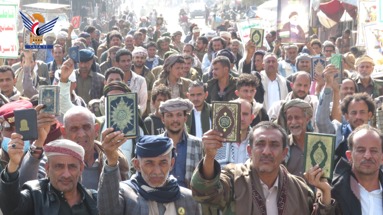 وعبر المشاركون عن الغضب الشعبي من الإساءة للقرآن الكريم، والتأكيد على الالتزام بنصرته، والوقوف إلى جانب القضية الفلسطينية، وربط الموقف من المقدسات بمعركة الأمة مع المشروع الأمريكي الصهيوني.
