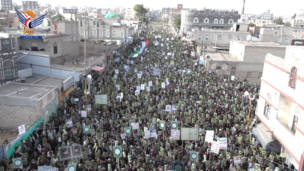 وأضاف "ومن منطلق هذا الإيمان وهذه الحكمة خرجنا لنسمع كل العالم صوتنا الرافض والغاضب لكل الإساءات الأمريكية والصهيونية المتكررة للقرآن الكريم وللمقدسات، ولنؤكد على ثبات موقفنا الإيماني في مساندة الشعب الفلسطيني المسلم المظلوم، وكذا جهوزيتنا العالية واستنفارنا واستعدادنا للجولة القادمة من الصراع مع الأعداء، ومواجهة كل مخططاتهم ومؤامراتهم التي تستهدف ديننا وأمتنا وبلدنا وشعبنا وكل المنطقة".