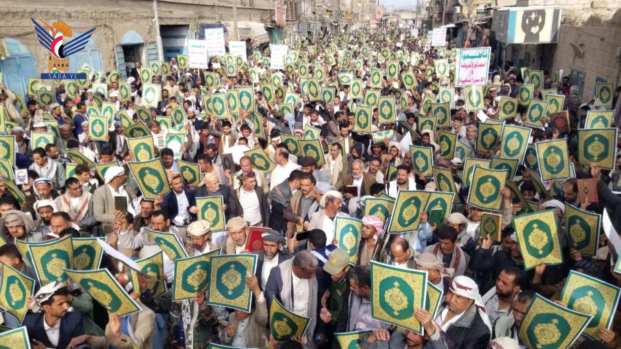 وأكد بيان صادر عن المسيرات، أن ما يتعرض له القرآن الكريم وهو أقدس مقدسات الإسلام من حملات إساءة متكررة وممنهجة، جزء من حرب يهودية صهيونية شاملة تستهدف الإسلام والمسلمين ومقدساتهم، وتتزعمها أمريكا وإسرائيل وبريطانيا ويتبعهم في ذلك أولياء الشيطان الرجيم.