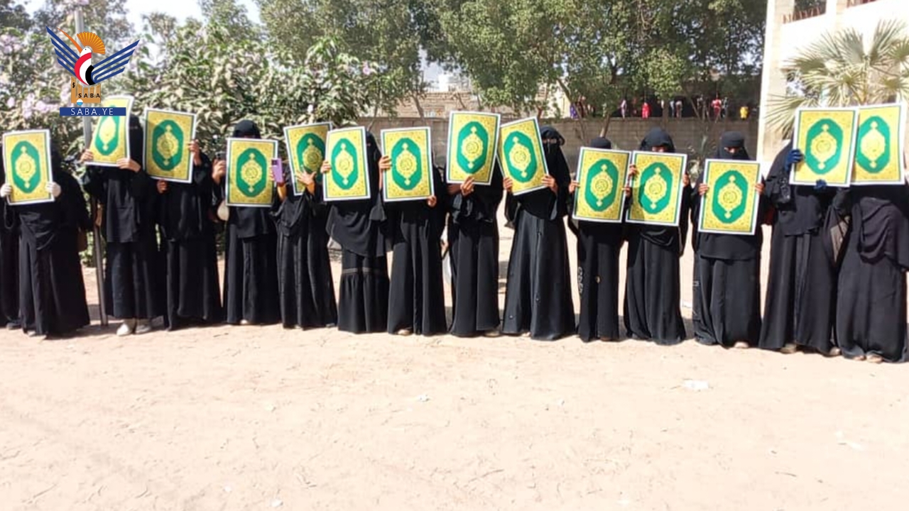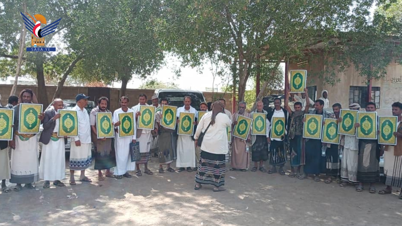 وقفة لمعلمي ومنتسبي محو الأمية بمديرية الزهرة بالحديدة تنديدًا بالإساءة للقرآن الكريم