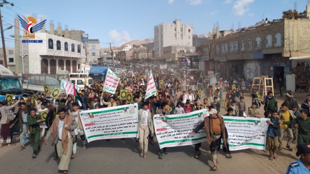 المحويت.. مسيرة طلابية بمديرية الرجم انتصارًا للقرآن ودعمًا لفلسطين