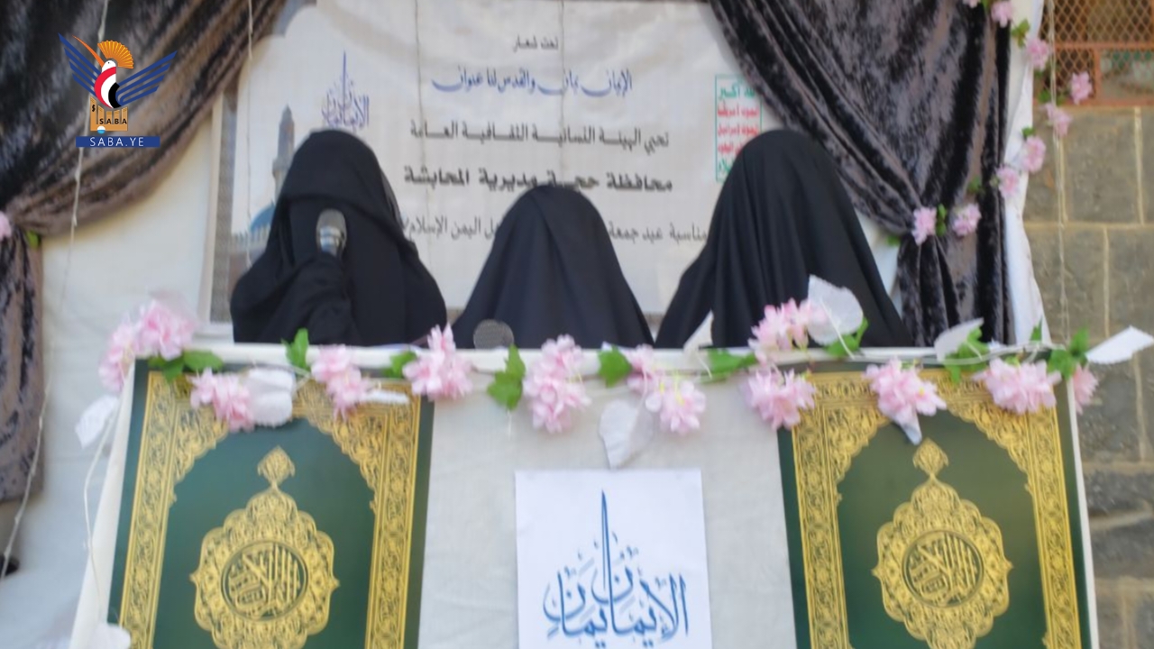 نظّمت الهيئة النسائية في مديرية المحابشة بمحافظة حجة اليوم، وقفتين، وندوتين ثقافيتين بمناسبة عيد جمعة رجب، تحت شعار "الإيمان يمان والحكمة يمانية".