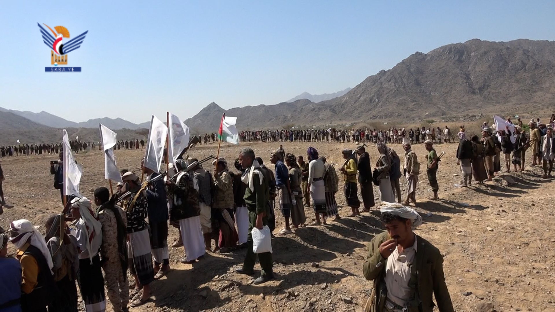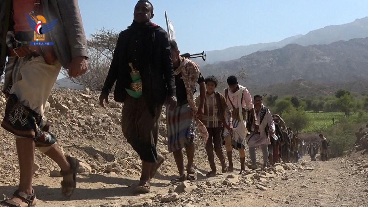 أُقيم اليوم في مديرية حزم العدين بمحافظة إب مسير ومناورة تطبيقية حاشدة لخريجي دورات "طوفان الأقصى" من أبناء عزل المربع الغربي بالمديرية.