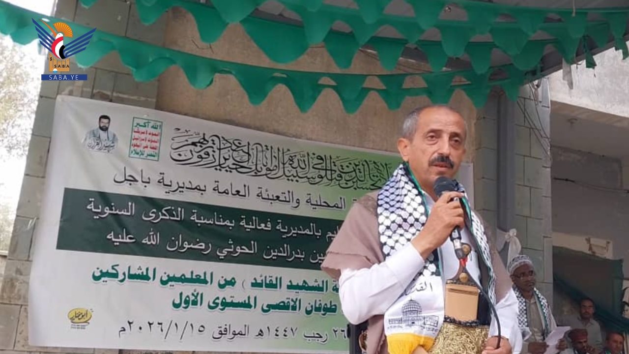 نظم القطاع التربوي بمديرية باجل محافظة الحديدة، اليوم، فعالية، خطابية، بالذكرى السنوية لشهيد القرآن السيد حسين بدرالدين الحوثي.