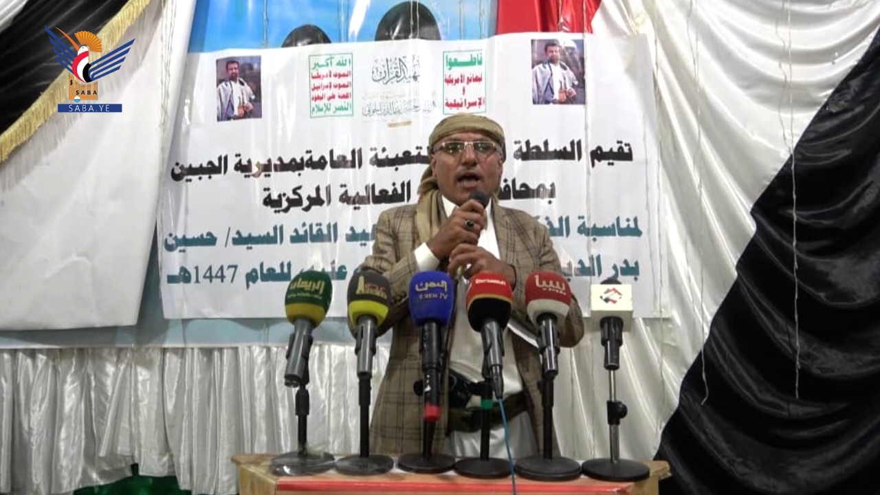 نظمت السلطة المحلية والتعبئة العامة بمديرية الجبين في محافظة ريمة اليوم، فعالية خطابية إحياءً للذكرى السنوية لشهيد القرآن السيد حسين بدرالدين الحوثي.