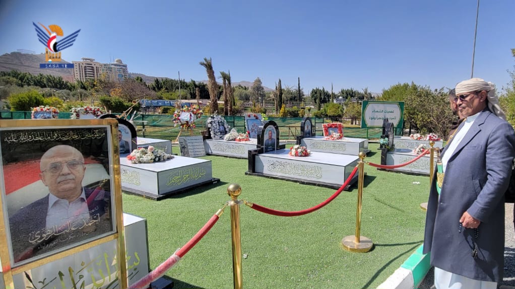 عقب ذلك، زار عضو السياسي الأعلى روضة شهداء حكومة التغيير والبناء، وقرأ الفاتحة على أرواحهم، مؤكدًا أن تضحياتهم ستثمر حريةً وعزةً وكرامةً للشعب اليمني.
