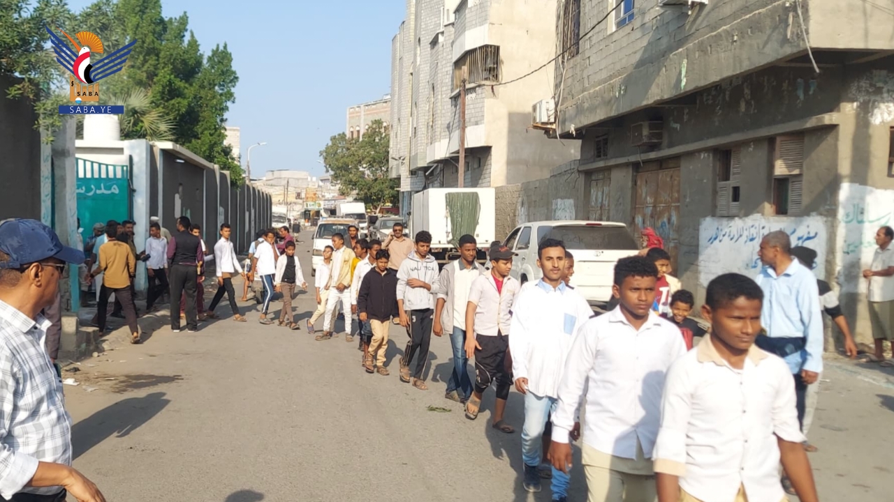 انطلق المسير من مدرسة الصباح الثانوية وصولاً إلى قاعة ومعرض الشهيد القائد حسين بدر الدين الحوثي، بمشاركة واسعة من طلاب المدارس، يتقدمهم، مدير إدارة التربية بالحوك مصطفى المغارم، وعدد من القيادات التربوية والكوادر التعليمية.