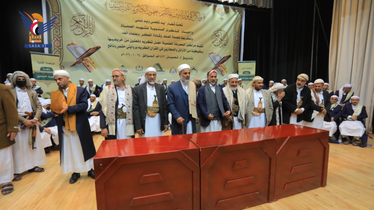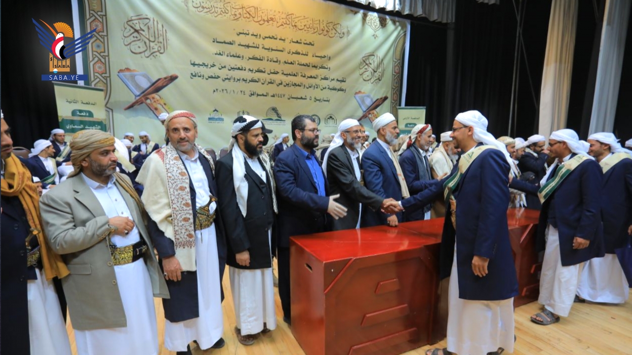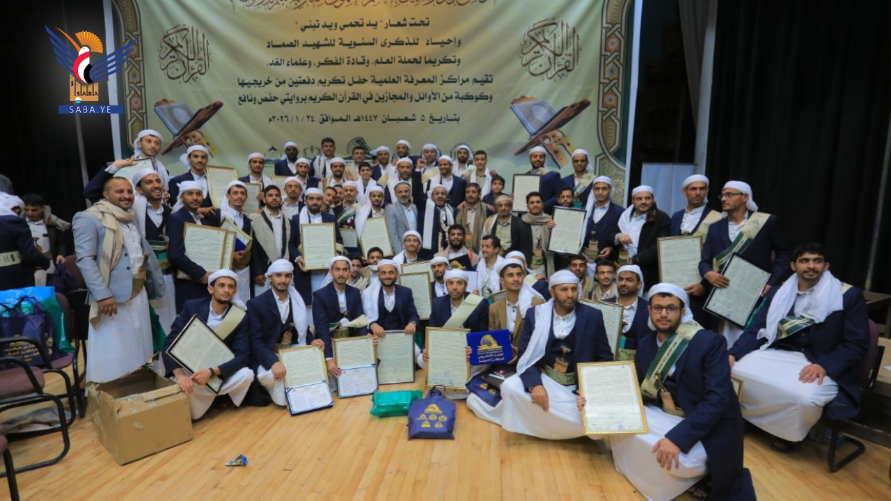 احتفت مراكز المعرفة العلمية اليوم بصنعاء بتخرج الدفعتين الأولى والثانية من منتسبيها دفعتي "الإمام مجدالدين المؤيدي" والشهيد السماوي" وكوكبة من الأوائل والمجازين في القرآن الكريم بروايتي حفص ونافع، في إطار الذكرى السنوية للشهيد الرئيس صالح الصماد تحت شعار" يد تحمي .. ويد تبني".