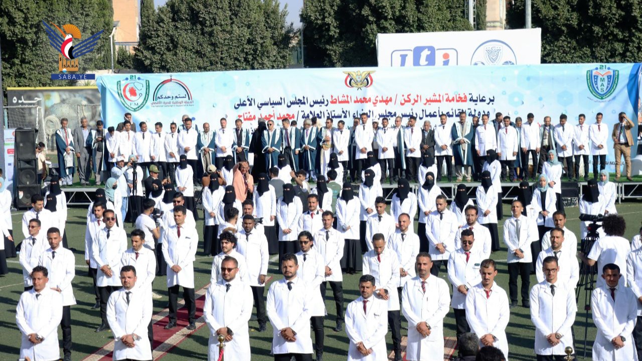 شارك عضو المجلس السياسي الأعلى محمد النعيمي والقائم بأعمال رئيس مجلس الوزراء العلامة محمد مفتاح، في حفل تخرج أقامته اليوم جامعة 21 سبتمبر للعلوم الطبية والتطبيقية للدفعة الثالثة - دفعة الرئيس الشهيد صالح الصماد من كلية الطب "طب وجراحة" لـ492 طبيبًا وطبيبة.