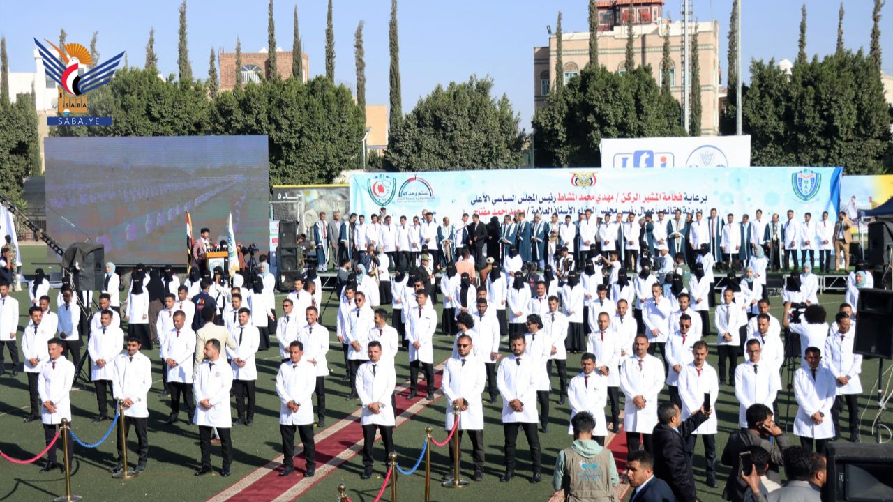 وفي الفعالية التي حضرها وكيل محافظة صنعاء محمد عايض، أشار نائب رئيس الجامعة للشؤون الأكاديمية الدكتور مطيع أبو عريج، إلى أن الجامعة تحتفي اليوم بتخريج 492 طبيباً وطبيبة بعد سنوات من الجهد والتأهيل في بيئة عززت التفكير النقدي، وأخلاقيات المهنة، ومواصلة مسيرة أكثر من ألف طبيب رفدت بهم الجامعة القطاع الصحي خلال دفعتين.