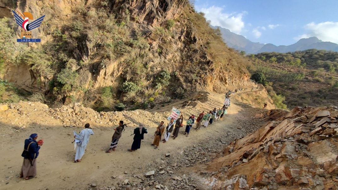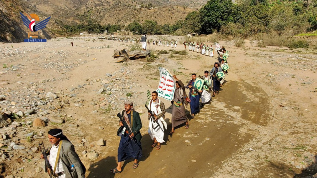 نظمت التعبئة العامة في مديرية بني العوام بمحافظة حجة، مسيرا ومناورة وتطبيقا قتاليا لخريجي دورات "طوفان الأقصى" في عزلة العريف.
