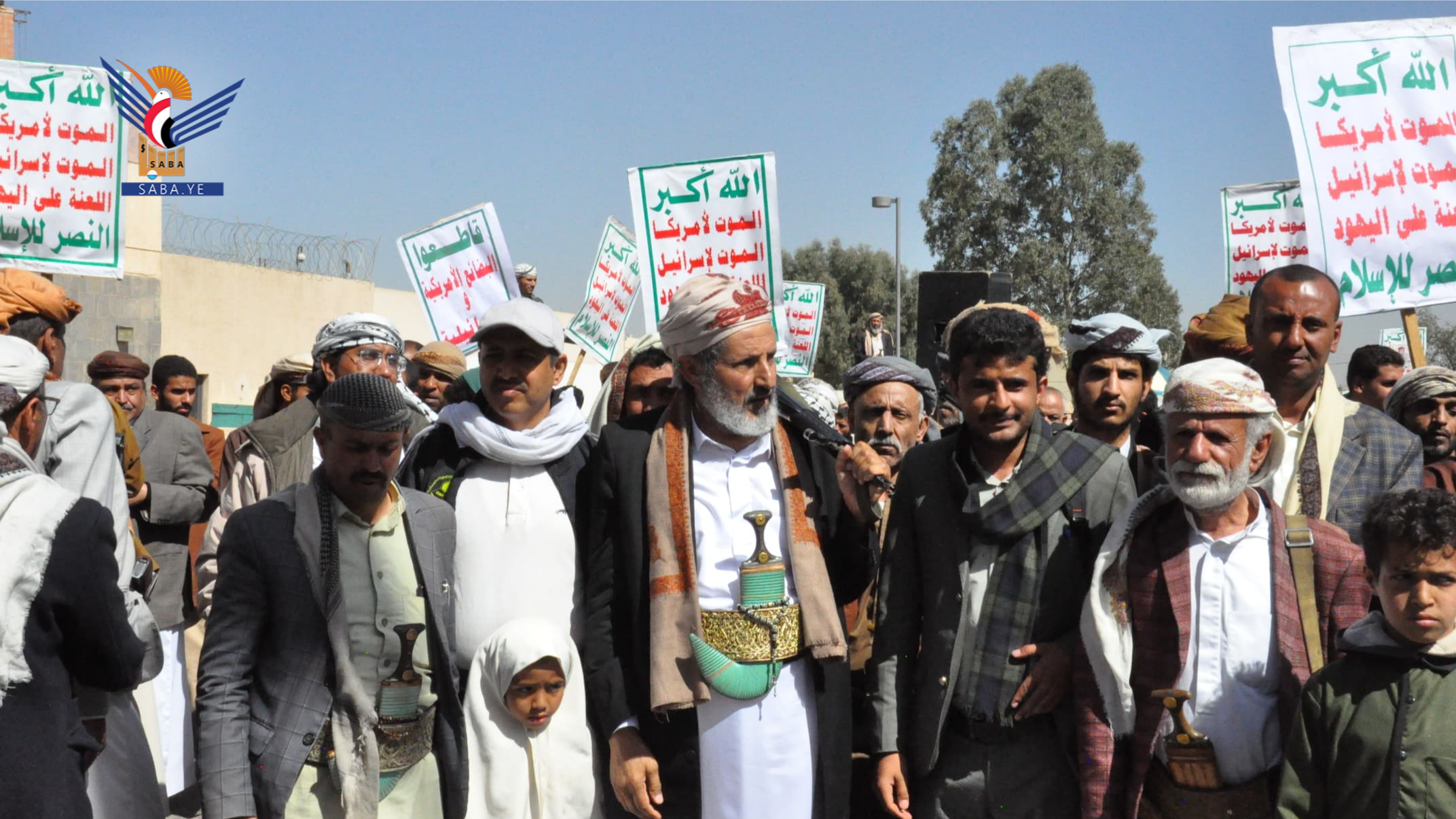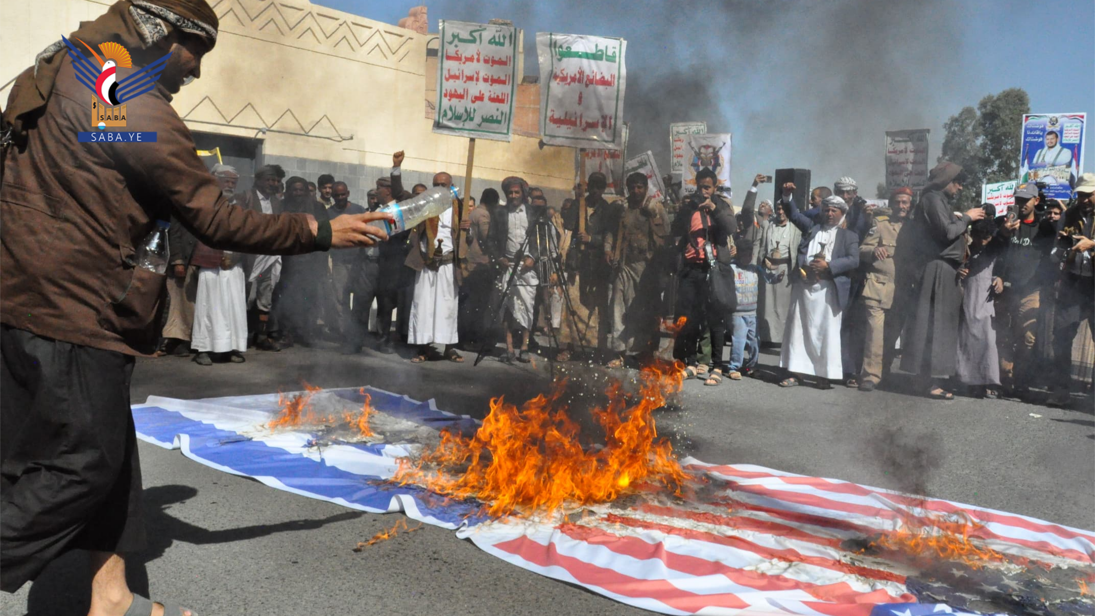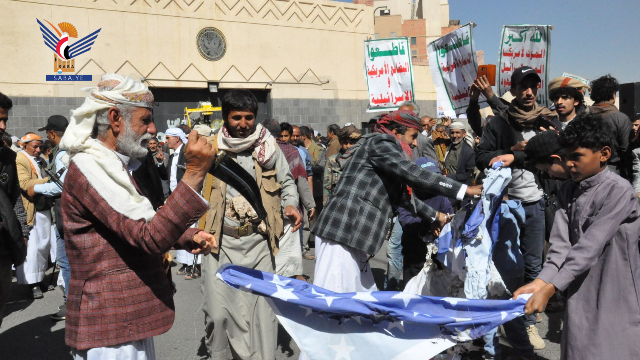 وردد المشاركون في المسيرة التي أقيمت أمام ما كان يسمى بالسفارة الأمريكية، بحضور نائب رئيس مجلس الشورى ضيف الله رسام ونائب وزير الإعلام الدكتور عمر داعر ووكيل أول أمانة العاصمة خالد المداني ورئيس لجنة الشؤون الاجتماعية حمود النقيب، وعدد من الوكلاء والقيادات المحلية والتنفيذية ومشايخ وشخصيات اجتماعية وحشود غفيرة من أبناء مديريات الأمانة، شعار البراء من الأعداء وشعارات النصر والحرية والاستقلال والعزة والكرامة.