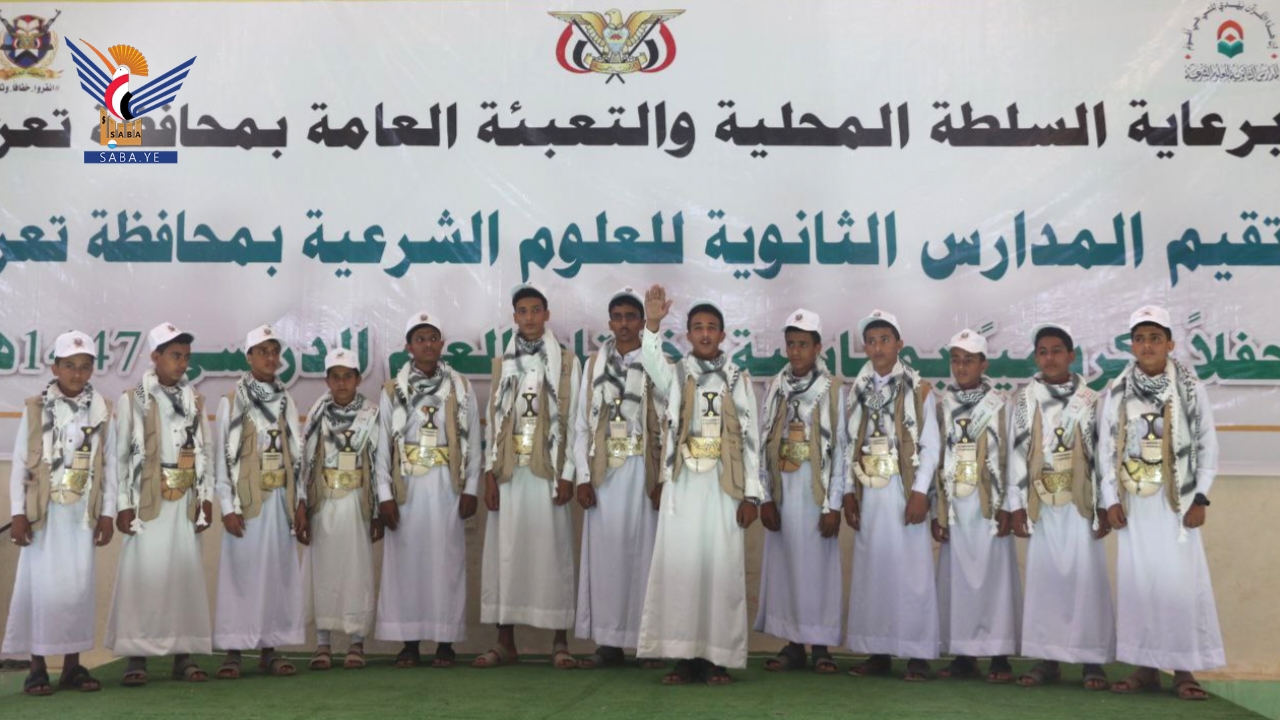جاء ذلك خلال حفل اختتام وتكريم 115 طالبًا من خريجي مدارس الثانوية للعلوم الشرعية بمحافظة تعز اليوم، الدفعة الثانية - دفعة الشهيد الفريق الركن محمد الغماري، للعام الدراسي 1447هـ، نظمته السلطة المحلية والتعبئة بالمحافظة.