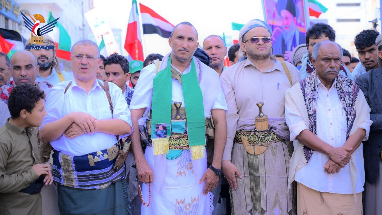 واحتشدت الجموع في 317 ساحة في مركز المحافظة وعموم المديريات، بمشاركة المحافظ عبدالله عطيفي ووكيل أول المحافظة أحمد البشري والوكلاء، مرددين هتافات الجهوزية والنفير والاستعداد للجهاد والانخراط في معركة المواجهة مع كيان العدو الصهيوني الأمريكي والدفاع عن الأمة واسنادا لإيران ومحور المقاومة.