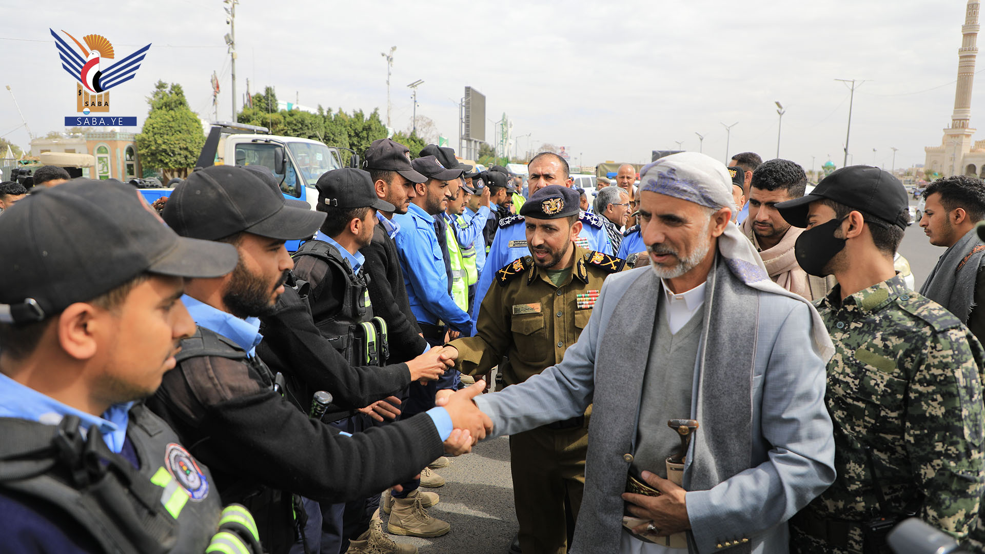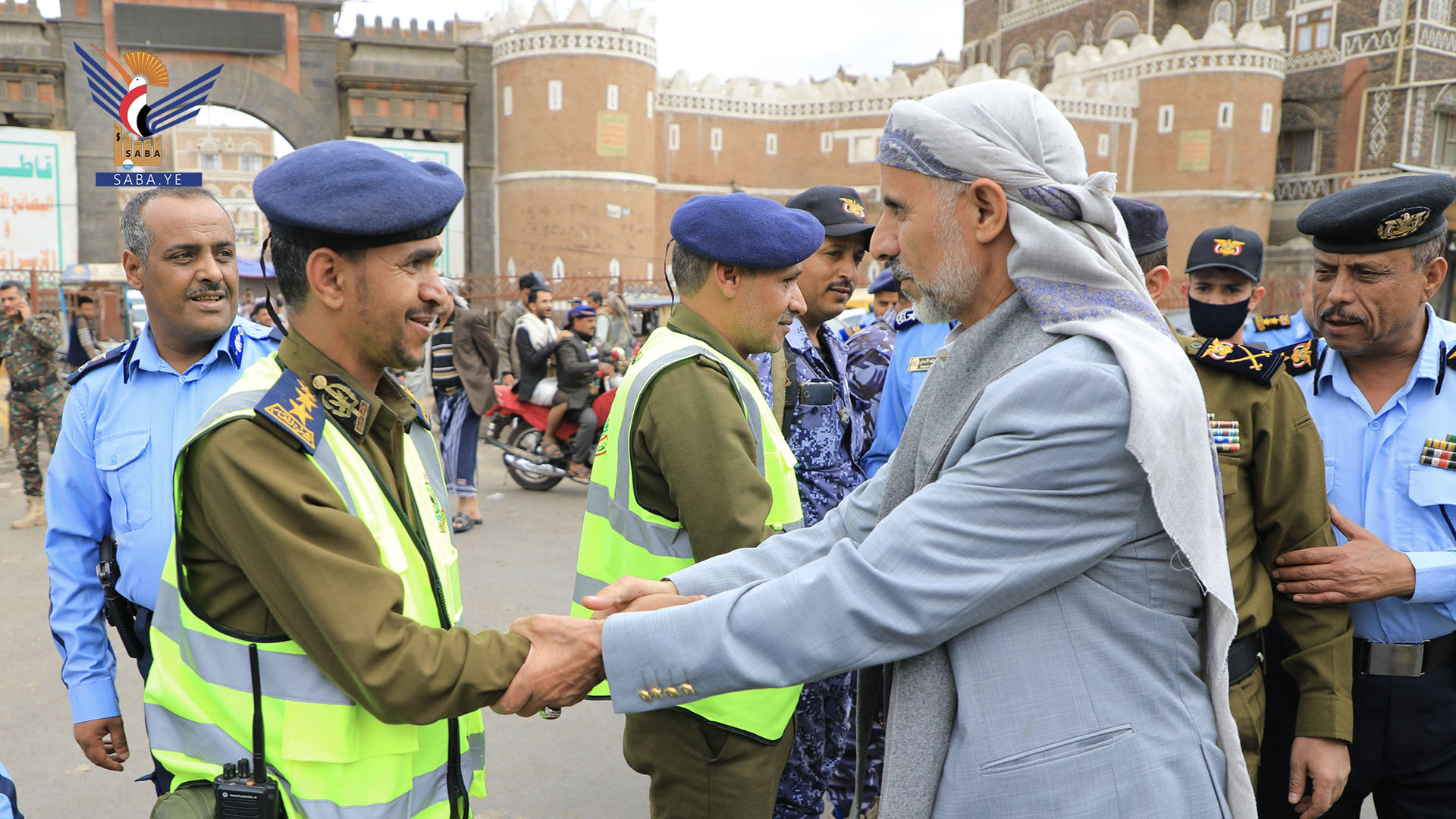كرًم القائم بأعمال رئيس مجلس الوزراء العلامة محمد مفتاح، خلال نزول ميداني اليوم، لعدد من شوارع أمانة العاصمة صنعاء ومعه نائب وزير الداخلية اللواء عبدالمجيد المرتضى عددًا من منتسبي المرور، والنجدة والدفاع المدني المرابطين في خدمة المجتمع خلال إجازة العيد.