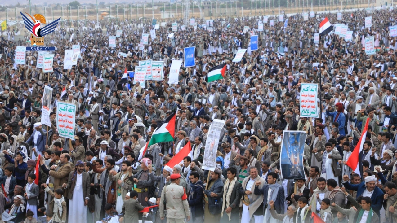 وقال "إننا خرجنا اليوم في مسيرات مليونية تأكيدًا على موقفنا الثابت المساند للشعب الفلسطيني والمسجد الأقصى وقضايا الأمة، وتأكيداً على موقفنا الثابت في مواجهة المشروع الأمريكي الإسرائيلي المسمى "إسرائيل الكبرى" الذي يستهدف أمتنا ومنطقتنا".