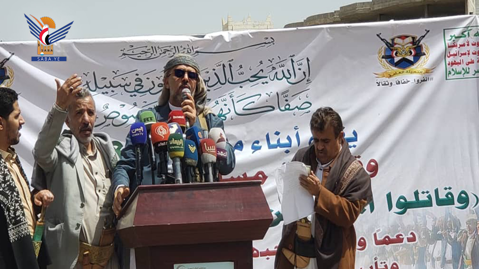أعلن أبناء مديرية شعوب في أمانة العاصمة، في وقفة مسلحة حاشدة، تأييدهم لعمليات القوات المسلحة، ودعمهم واسنادهم لمحور الجهاد والمقاومة في مواجهة أعداء الأمة.