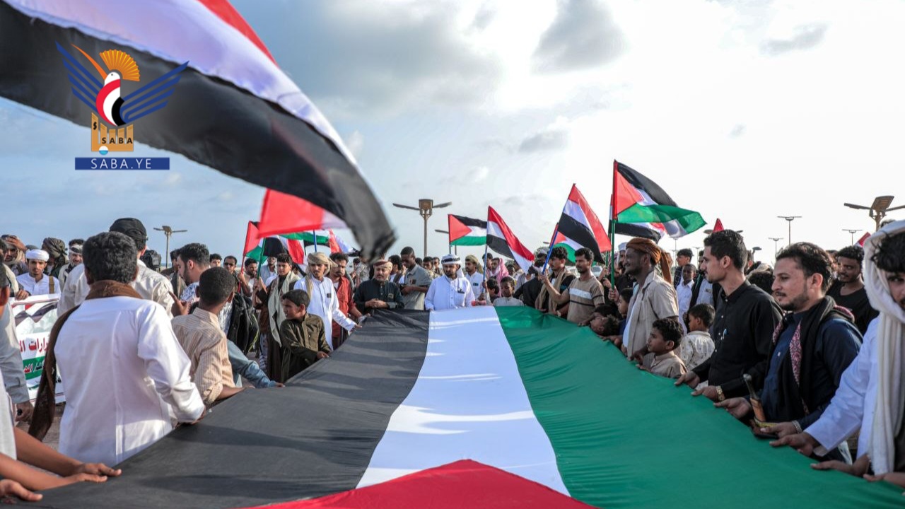 نظّم أبناء محافظة المهرة مسيرة ووقفات تضامنية حاشدة مع الشعب الفلسطيني وقضيته العادلة والتنديد بالانتهاكات الإسرائيلية بحق سكان قطاع غزة والضفة وكل فلسطين.