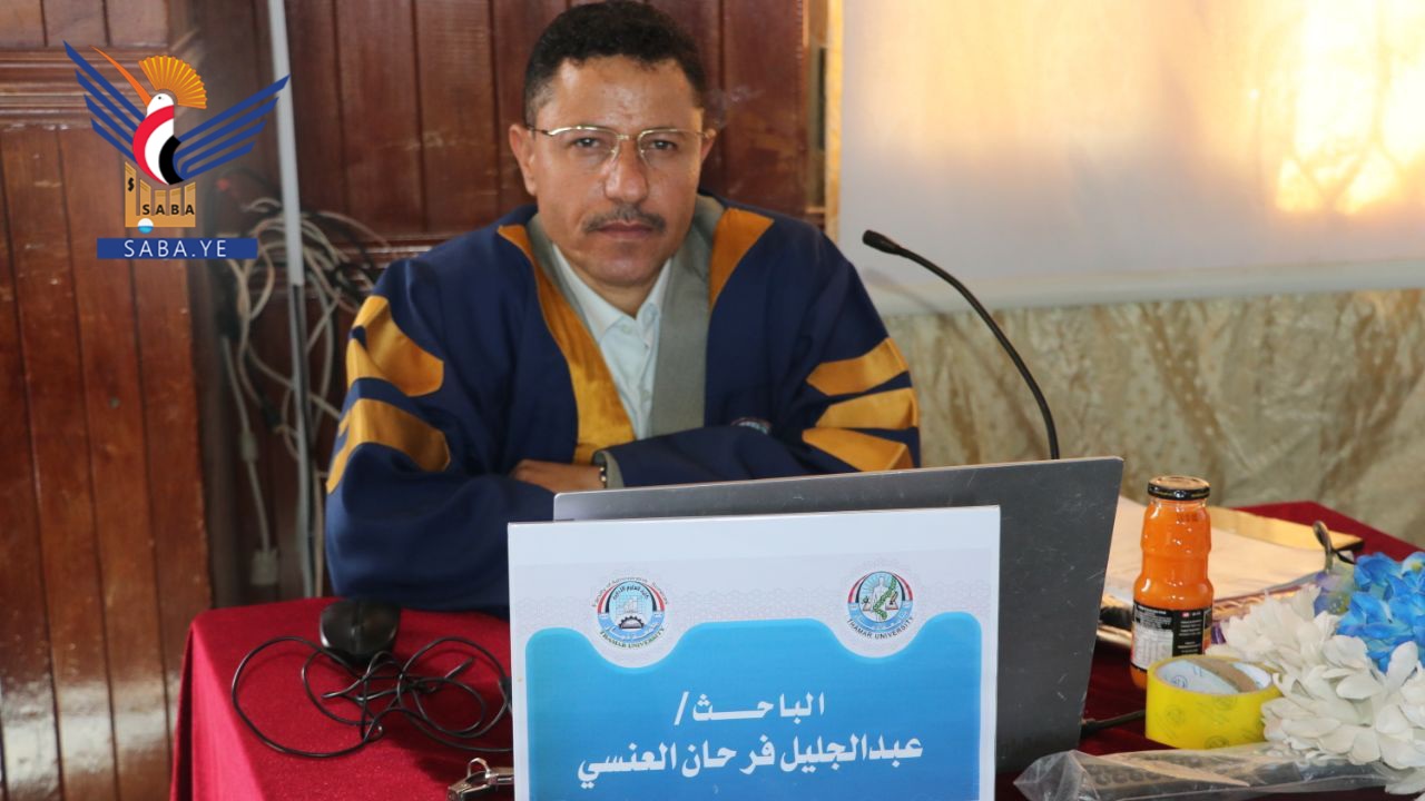 الماجستير بامتياز للباحث عبدالجليل العنسي من جامعة ذمار