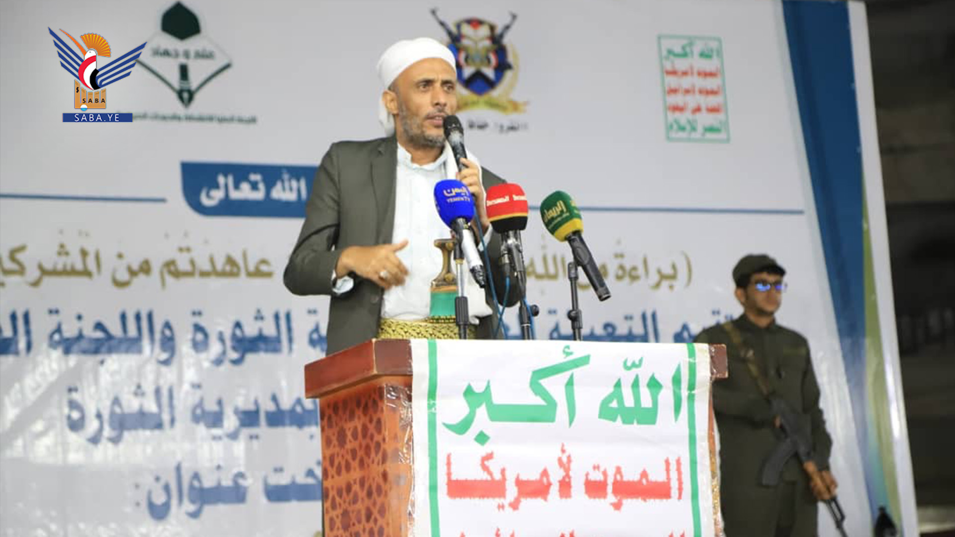 وأوضح عضو رابطة علماء اليمن الدكتور غالب عامر، أن الشعار يمثل إعلان البراءة من أعداء الله، وفضح المنافقين وكسر حاجز الخوف في مواجهة قوى الطغيان الأمريكي، الإسرائيلي.