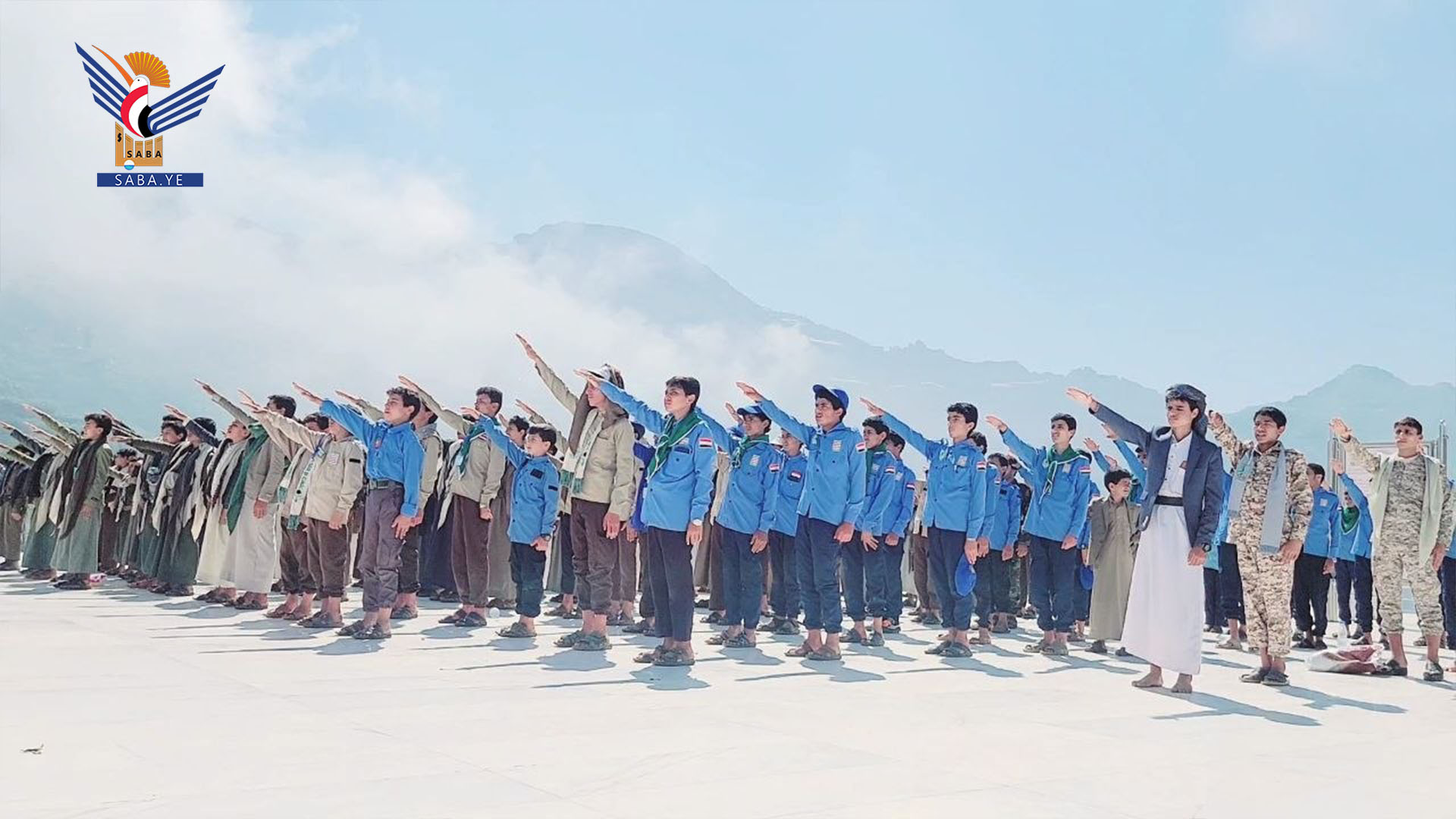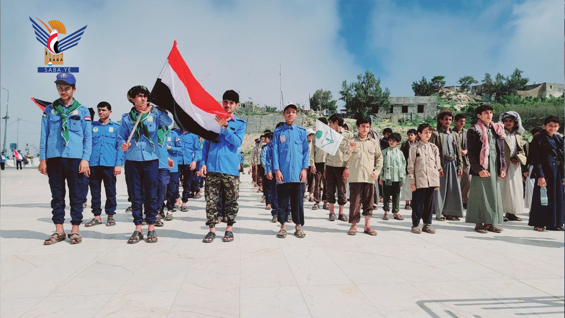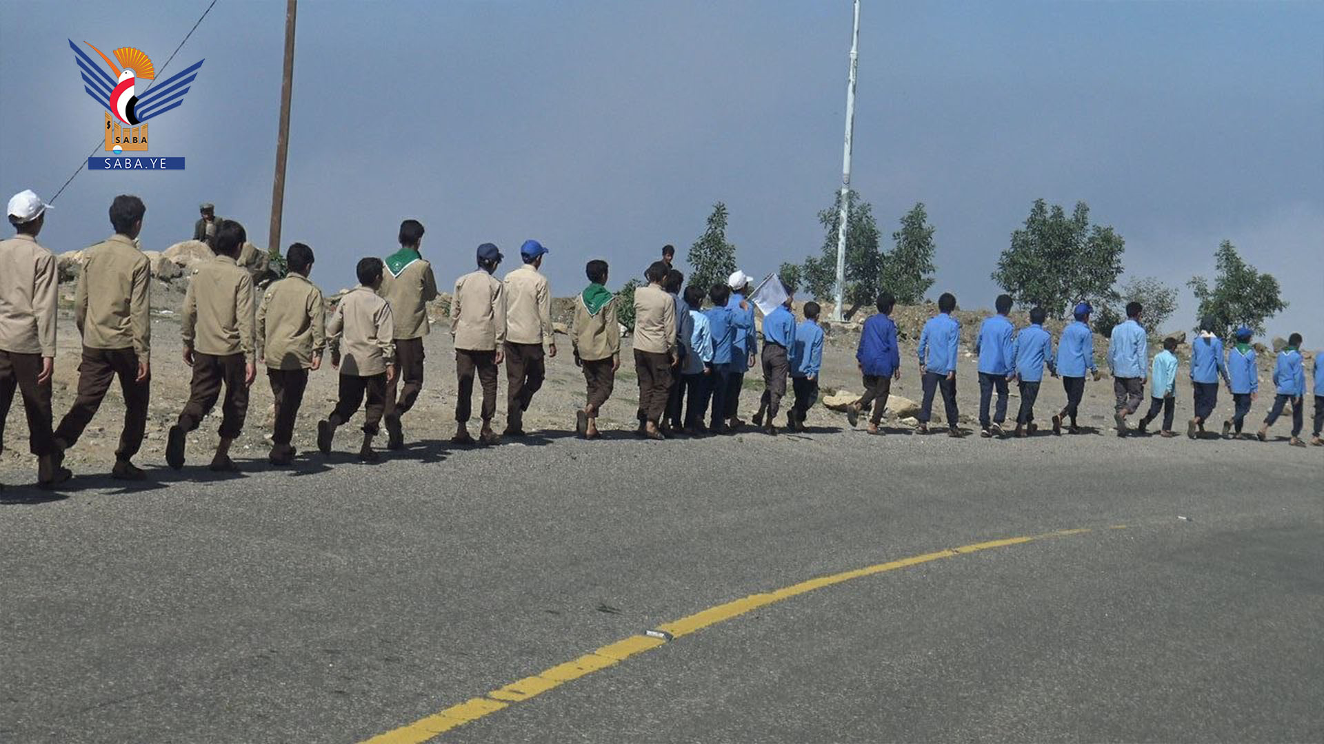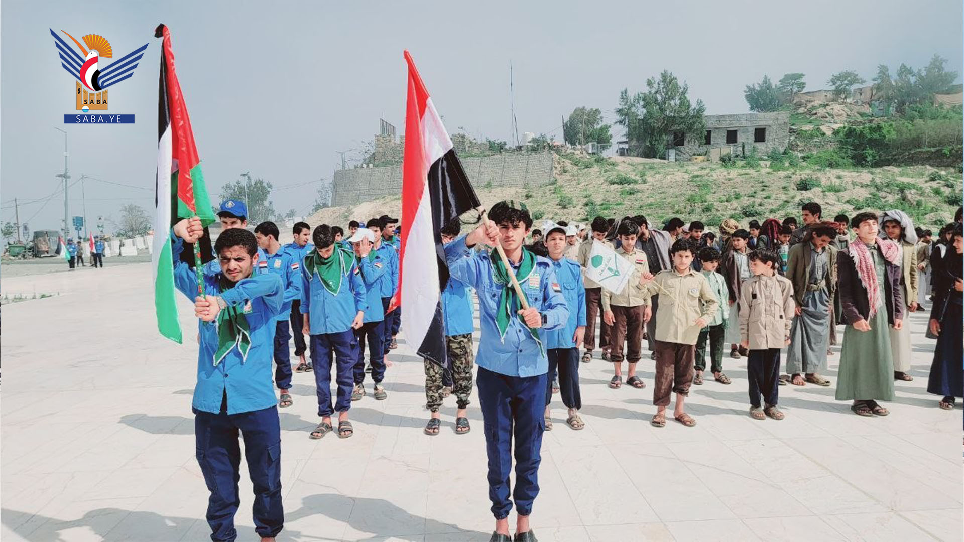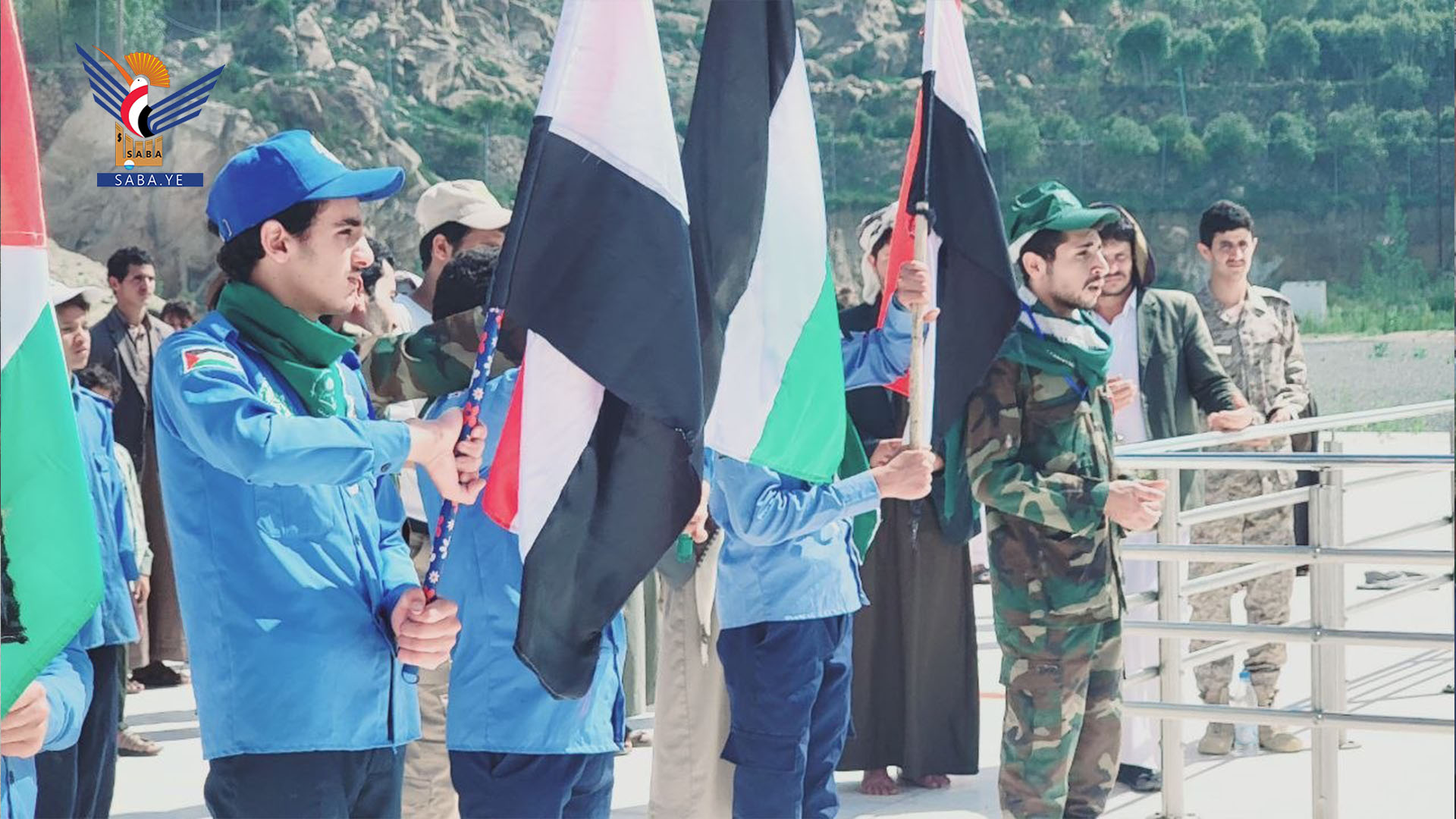 ورفع الطلاب خلال المسير الكشفي، العلمين اليمني والفلسطيني، تعبيراً عن التمسك بالموقف المبدئي في نصرة فلسطين، ومدى ارتباط الجيل الناشئ بالقضية المركزية للأمة.