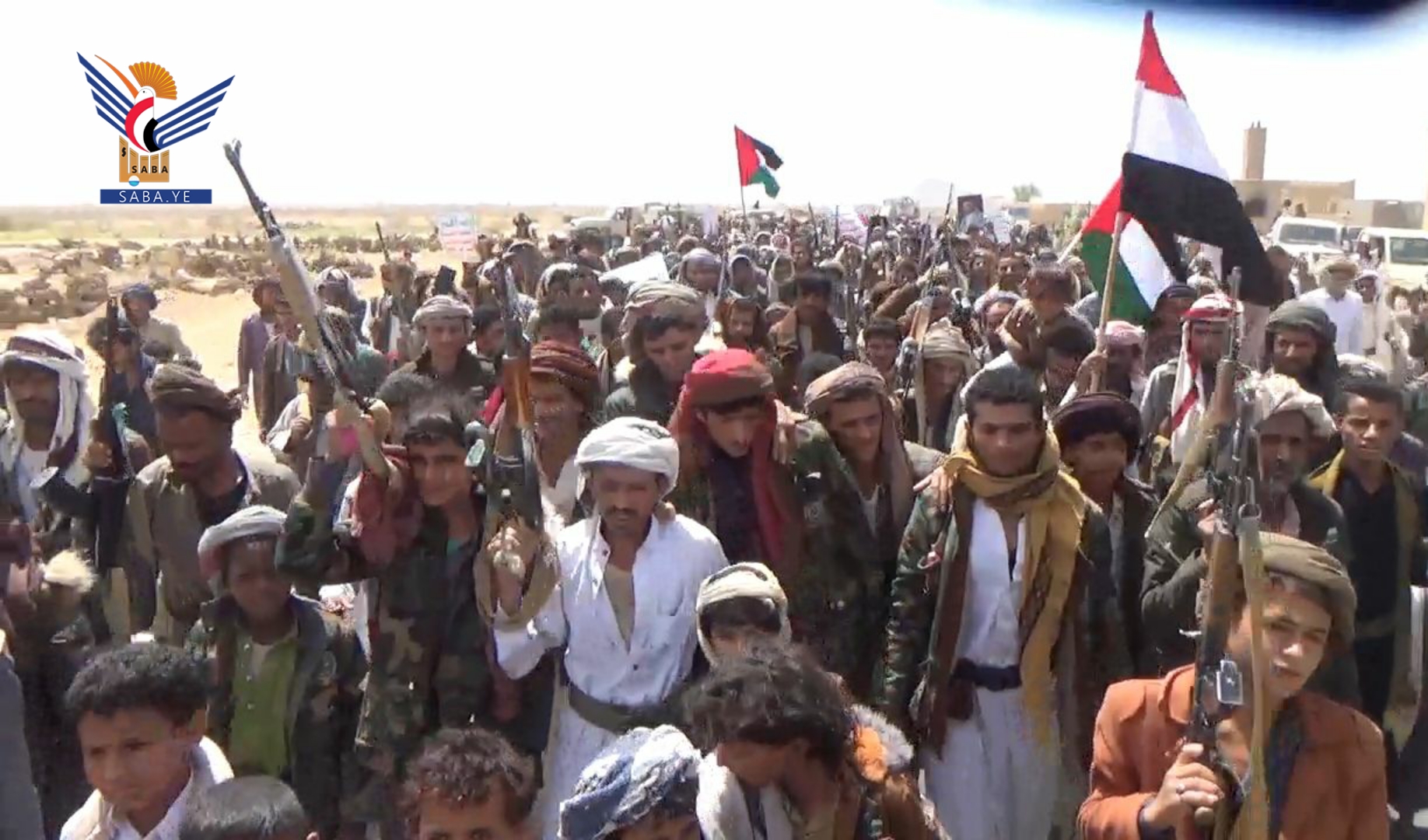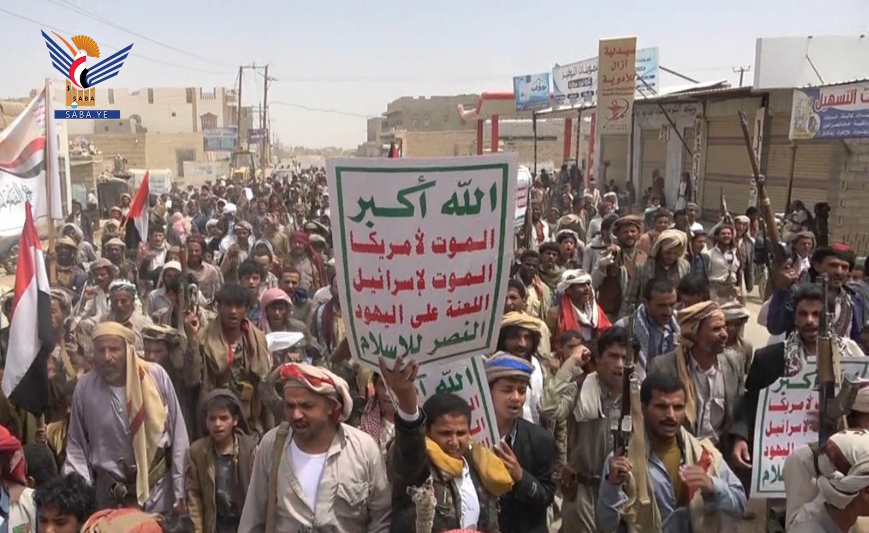 مسيرات جماهيرية في 13 ساحة في الجوف تضامناً مع الشعب الفلسطيني
