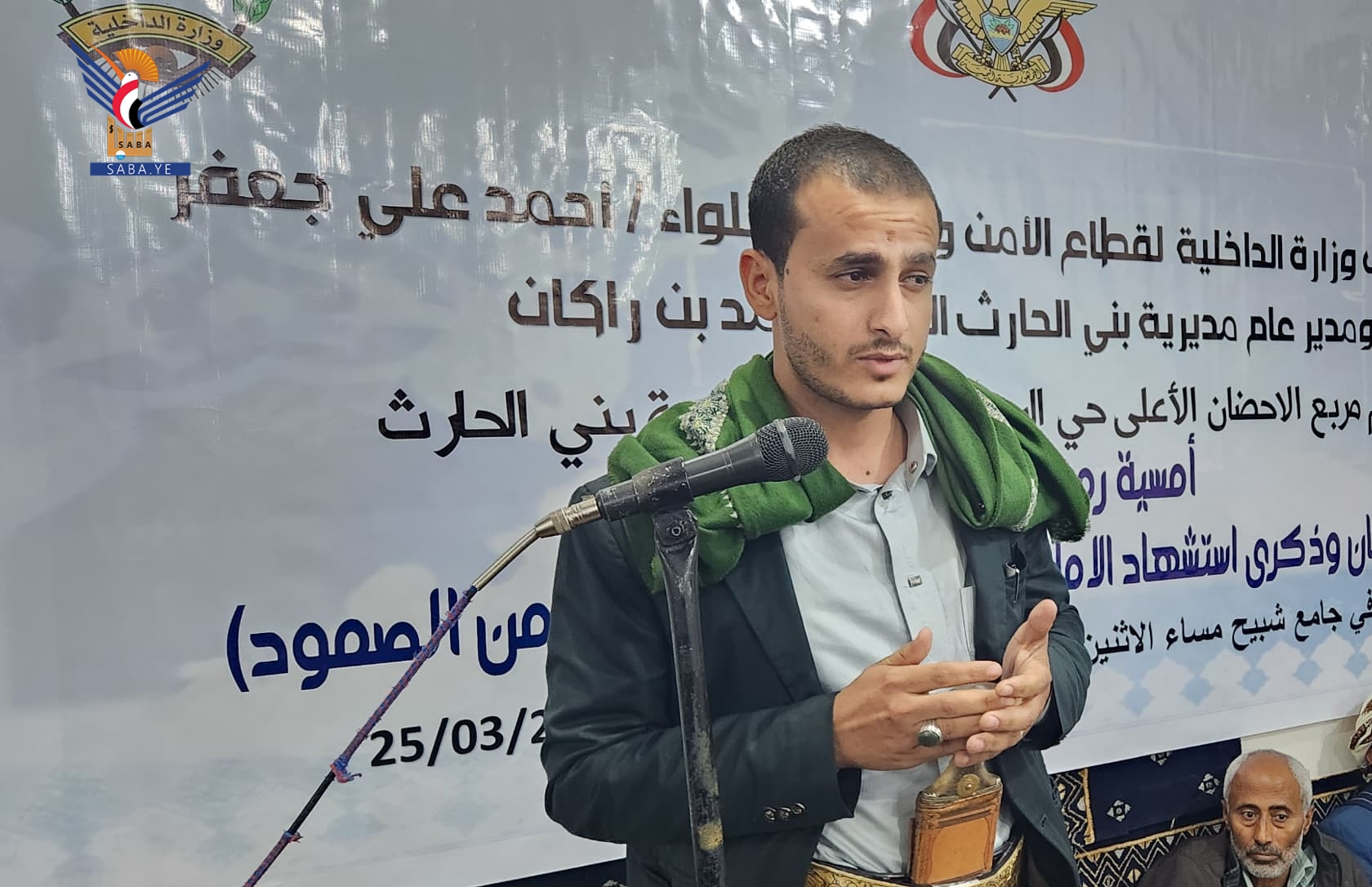 فيما استعرض مدير مكتب الثقافة بأمانة العاصمة عبدالله المعافا موجهات قائد الثورة المتصلة بمسؤوليات الجميع خلال الشهر الفضيل، وما حمله العام التاسع من بشائر الصمود والتطور في القدرات العسكرية التي سترغم العدو الصهيوأمريكي على إيقاف عدوانه وحصاره على قطاع غزة.