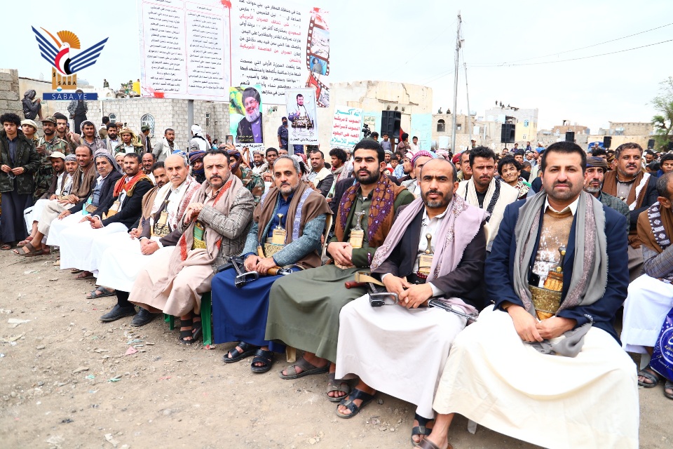 إحياء الذكرى التاسعة للصمود بموقع أول جريمة لتحالف العدوان بمديرية بني الحارث