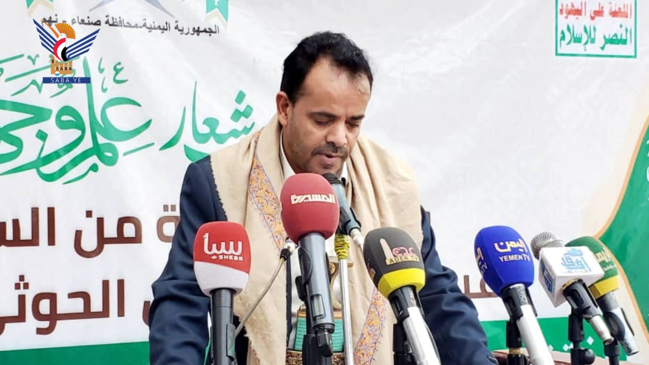 ودعا أبناء محافظة صنعاء، للحضور المشرف في فعالية إحياء يوم القدس بميدان السبعين ليرى الأمريكي والصهيوني وعملاؤهم من العرب أن للقدس رجال سيكون على أيديهم النصر وتحرير الأقصى وفلسطين.