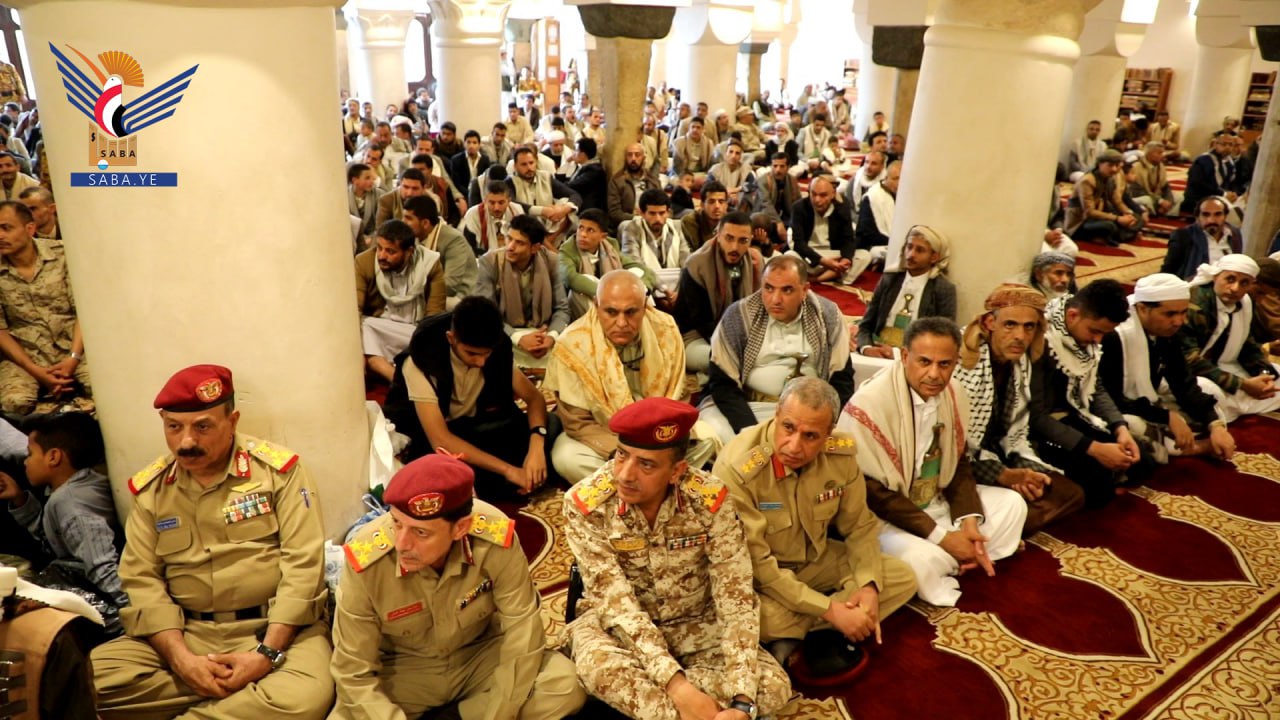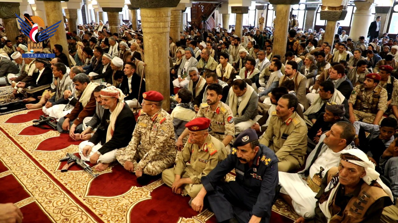 وعرّج العلامة شرف الدين على الموقف اليمني المشرف في مواجهة الطغيان وثالوث الشر "أمريكا وإسرائيل وبريطانيا"، ووقوف الشعب اليمني بقيادته الحكيمة في مناصرة الشعب الفلسطيني في غزة والأراضي المحتلة.