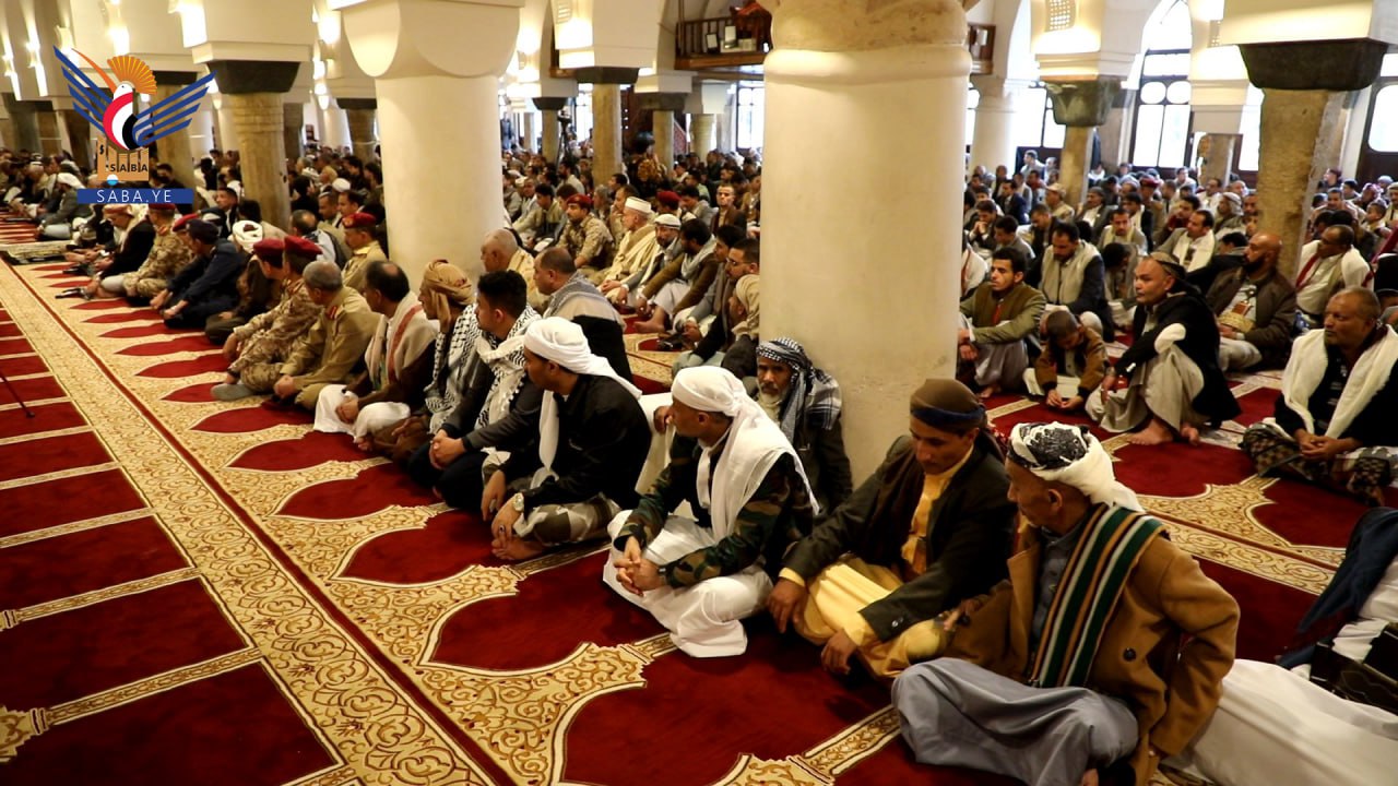 وتطرق إلى معاناة أبناء غزة في فلسطين جراء العدوان الأمريكي الصهيوني الأوروبي، وما خلفه من جرائم ومجازر يندى لها جبين الإنسانية .. مضيفاً "اليوم ننعم بالأمن والاستقرار ونشعر بالفرحة والسرور، بينما إخواننا في غزة في حالة ضنك من العيش وقصف وحصار وخراب ودمار وعذاب أليم، ما يتطلب من مراعاة المشاعر الإنسانية تجاههم".