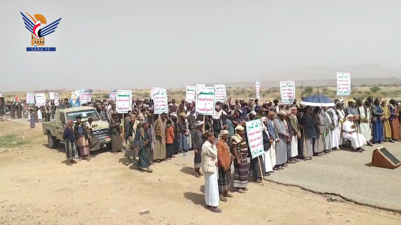 إلى ذلك احتشد أبناء مديرية بدبدة في مسيرة ووقفة، نددوا خلالهما بالموقف المتخاذل والمتواطئ لبعض الأنظمة العربية، المساند للكيان الصهيوني عسكريا وسياسيا وإعلاميا.