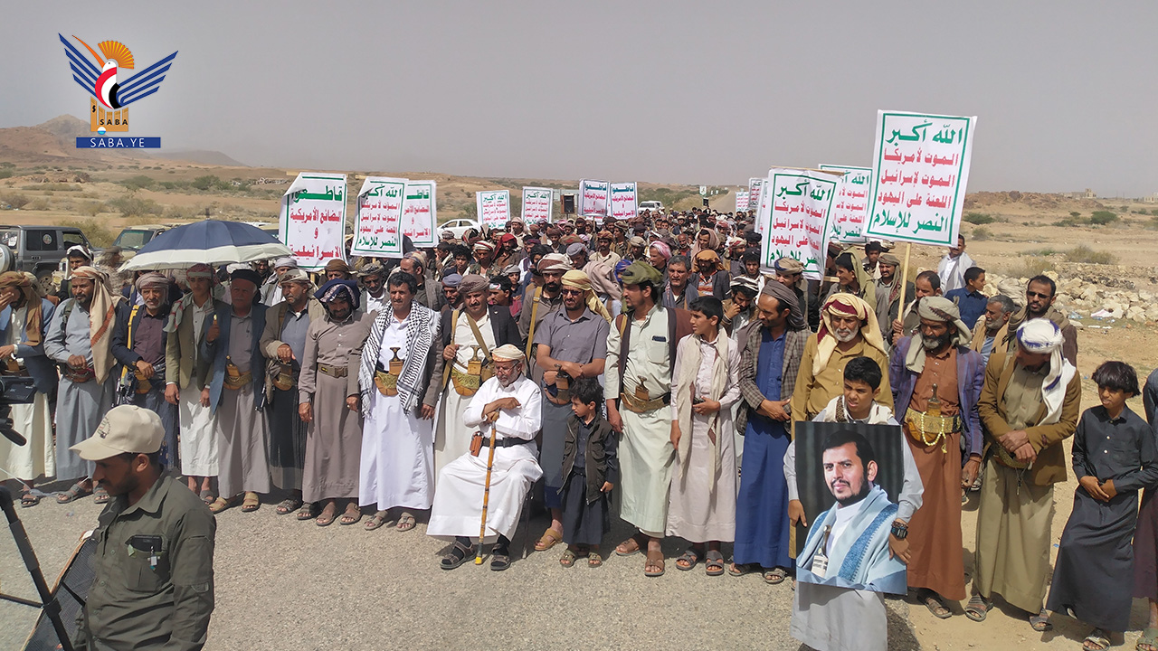 وشهدت مديرية صرواح مسيرة حاشدة، بارك المشاركون فيها العمليات العسكرية للقوات المسلحة اليمنية نصرة لفلسطين، وكذا الرد العسكري الإيراني ضد العدو الصهيوني.