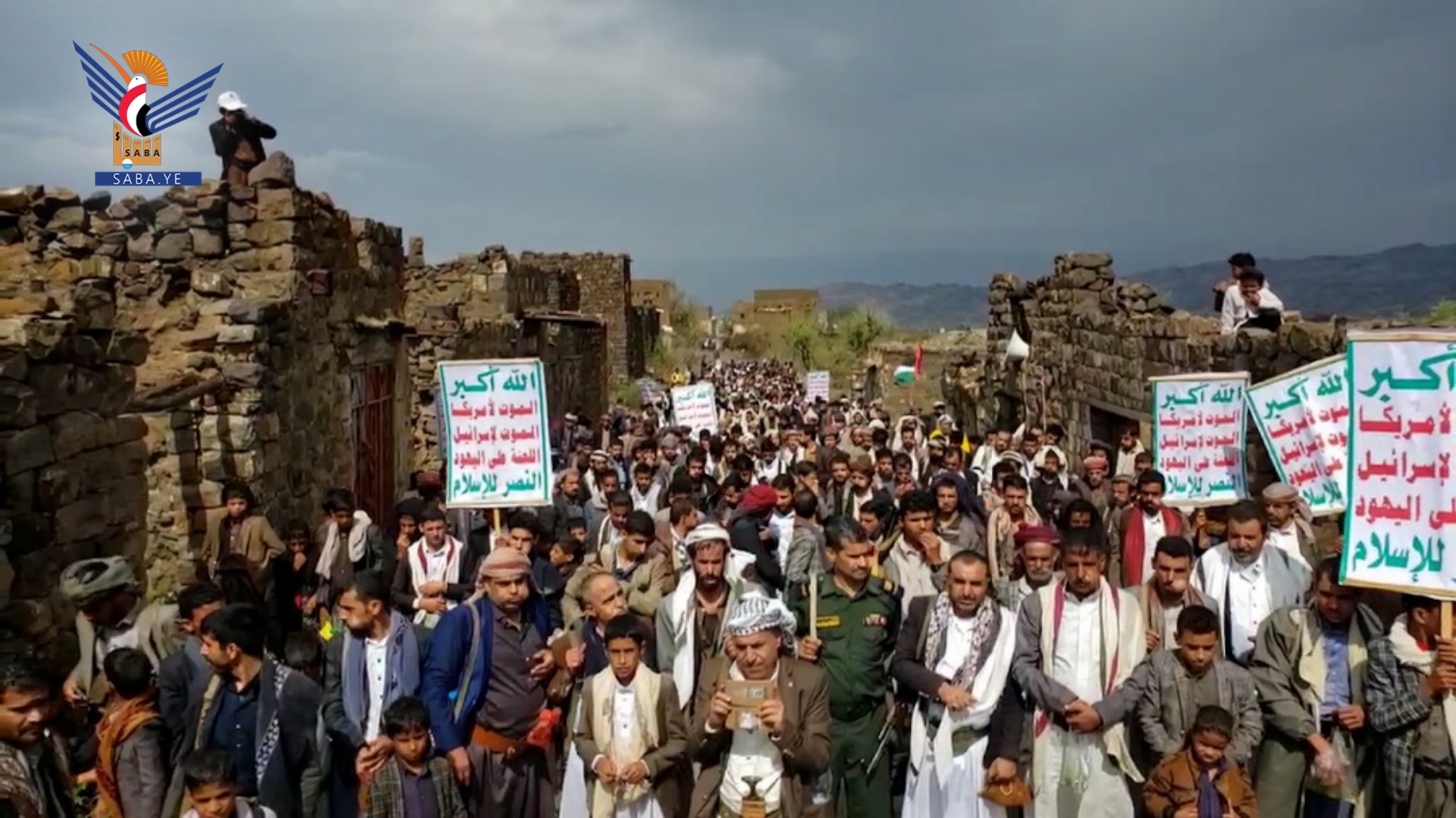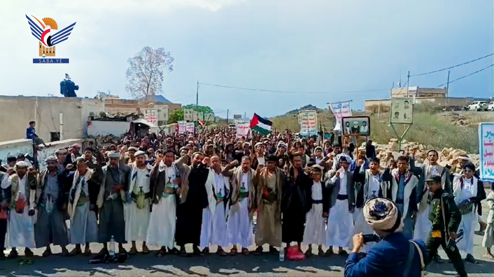 وفي مديرية خارف، خرج أبناء المديرية في مسيرة حاشدة، تقدّمها عضو مجلس الشورى، زمام الزمني، وأمين عام محلي المحافظة، صالح المخلوس، ومدير المديرية، طارق صبر، وقيادات تربوية وتعبوية وثقافية ومشايخ، نددوا فيها بجرائم العدو الصهيوني - الأمريكي - البريطاني بحق الشعب الفلسطيني.