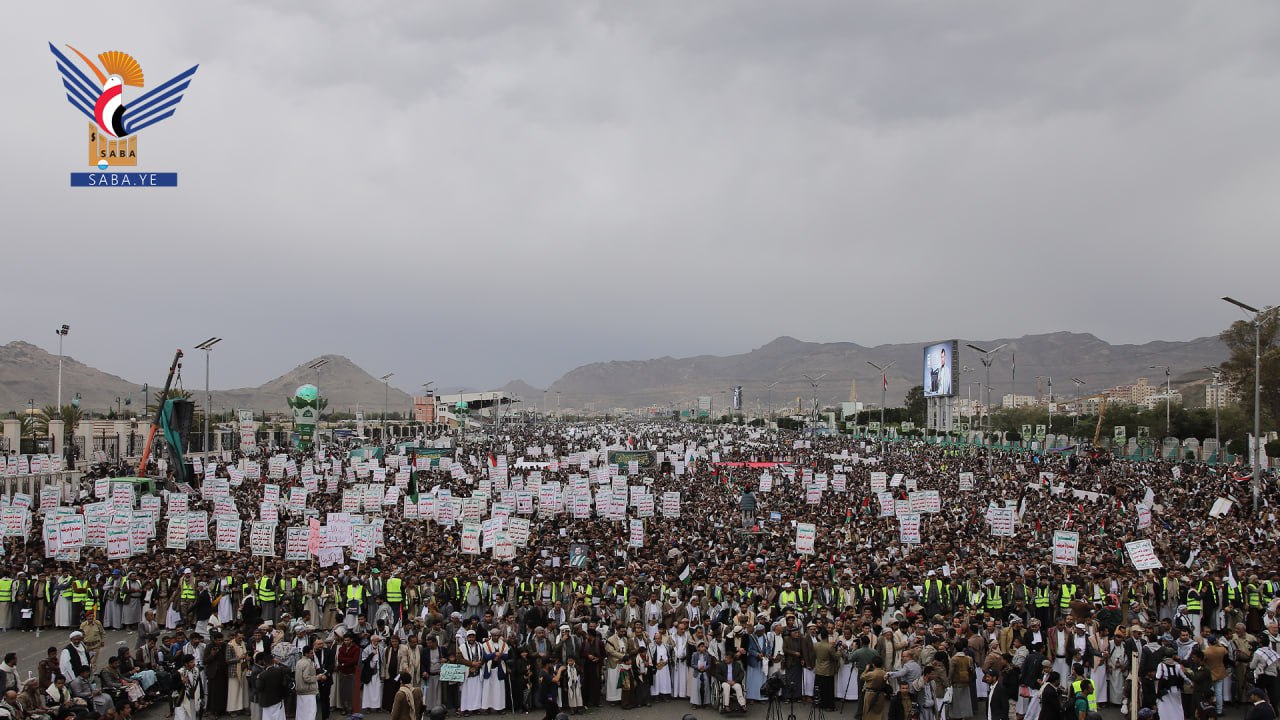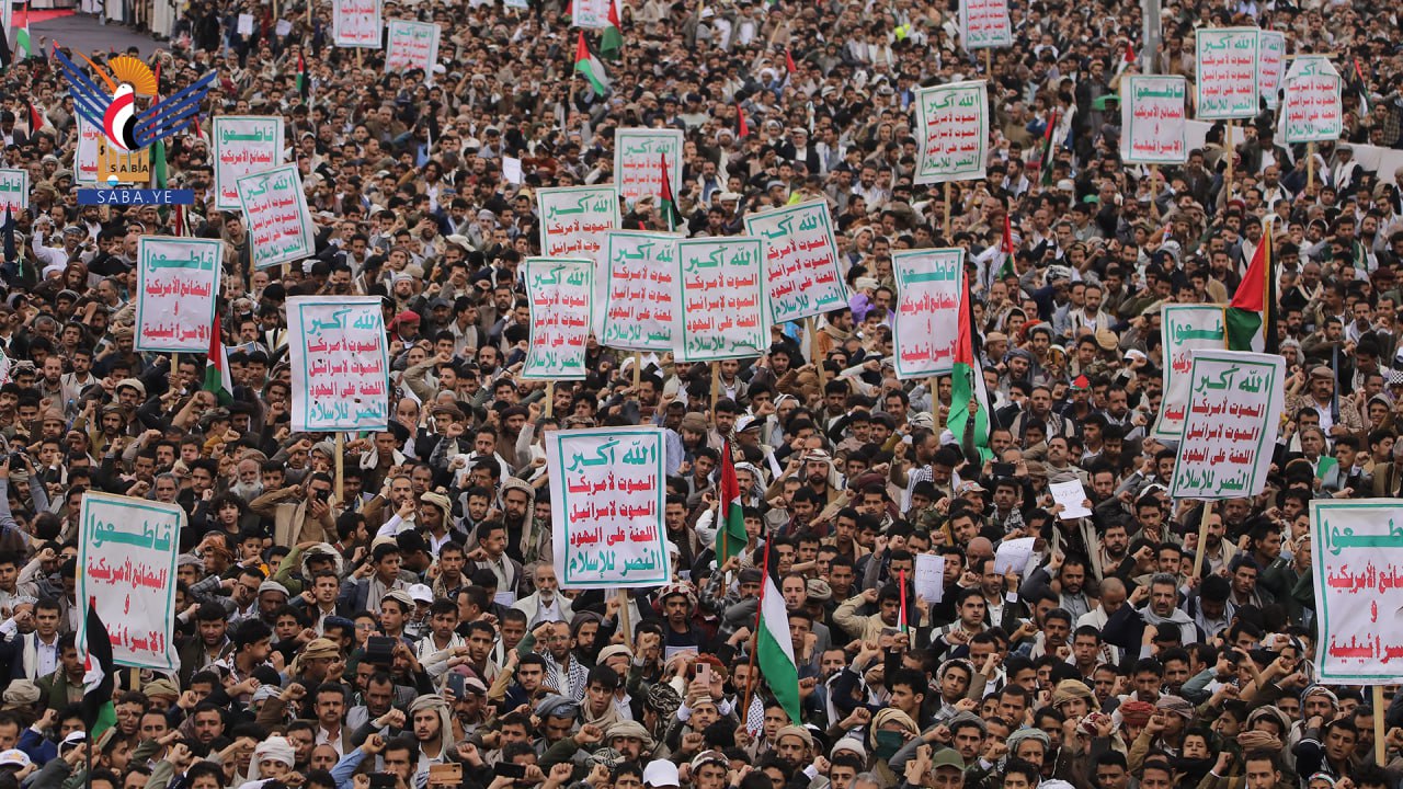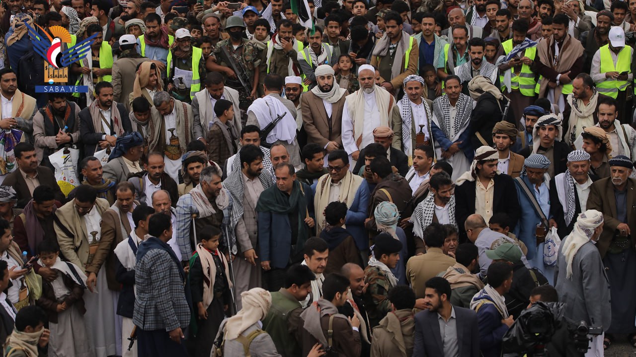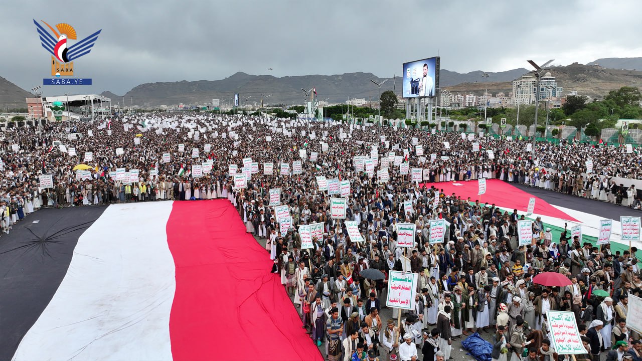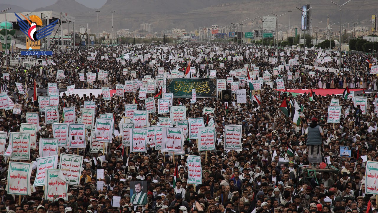 واستنكرت الحشود الجماهيرية، الصمت العربي والإسلامي وتغاضي المجتمع الدولي عما يتعرض له الأشقاء في فلسطين من مجازر وحرب إبادة جماعية بحق الأطفال والنساء بدعم أمريكي وغربي.