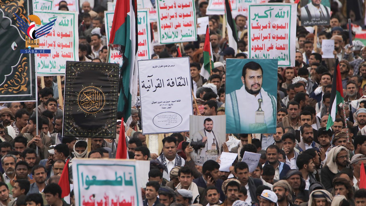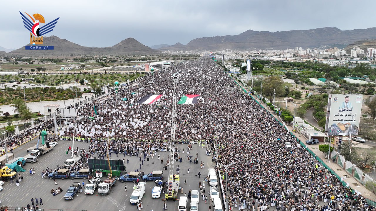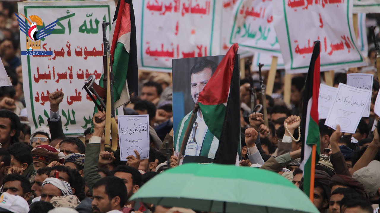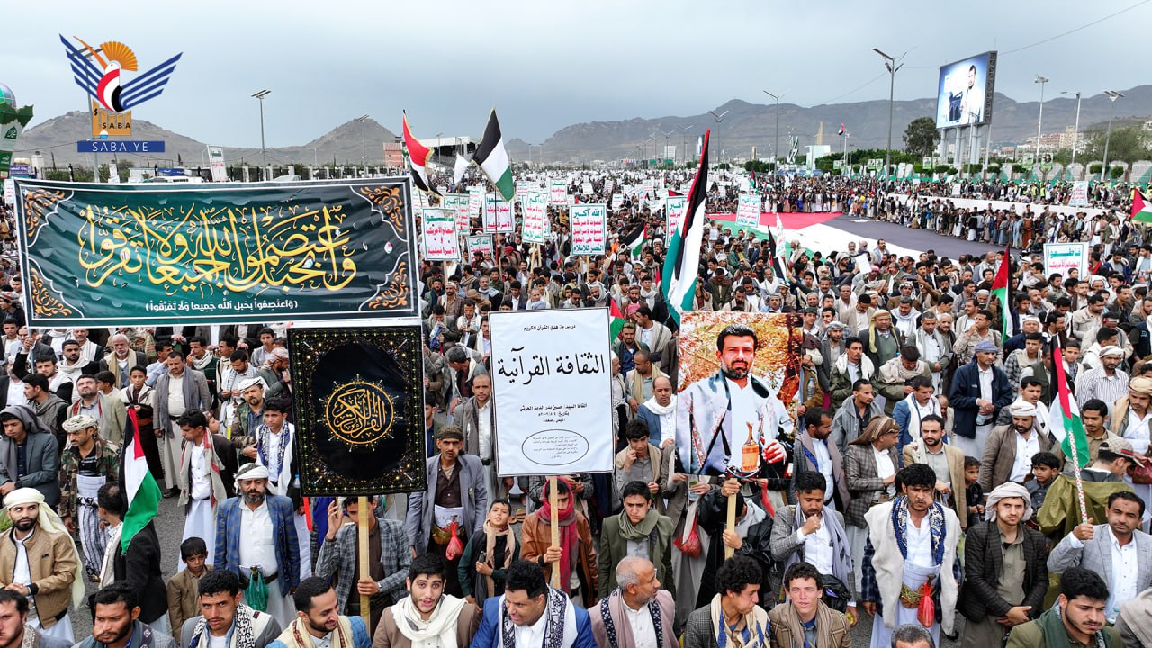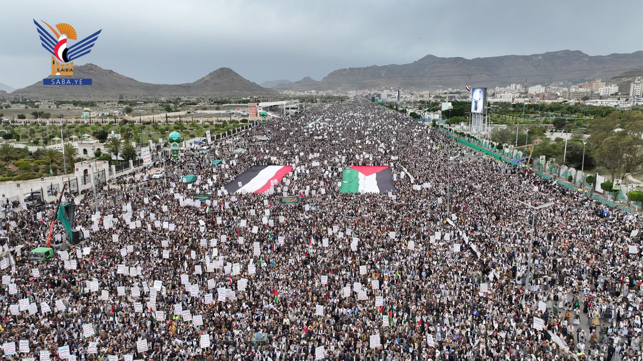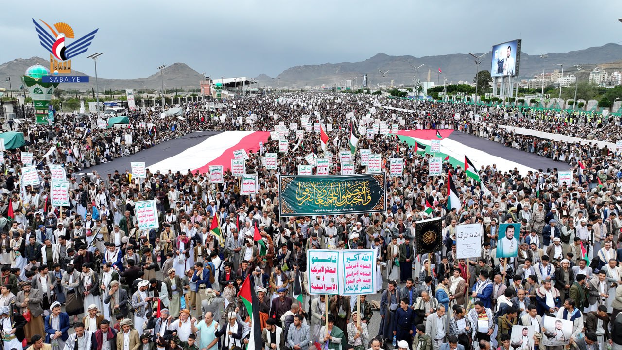 واستنكرت الحشود الجماهيرية، الصمت العربي والإسلامي وتغاضي المجتمع الدولي عما يتعرض له الأشقاء في فلسطين من مجازر وحرب إبادة جماعية بحق الأطفال والنساء بدعم أمريكي وغربي.
