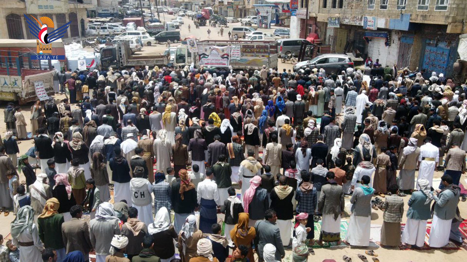 وباركت الحشود الجماهيرية عمليات القوات المسلحة اليمنية في استهداف مواقع وموانئ وسفن العدو الصهيوني وكذا السفن الأمريكية والبريطانية والمتجهة إلى الموانئ الفلسطينية المحتلة حتى إيقاف العدوان ورفع الحصار والسماح بدخول الغذاء والدواء لسكان غزة.