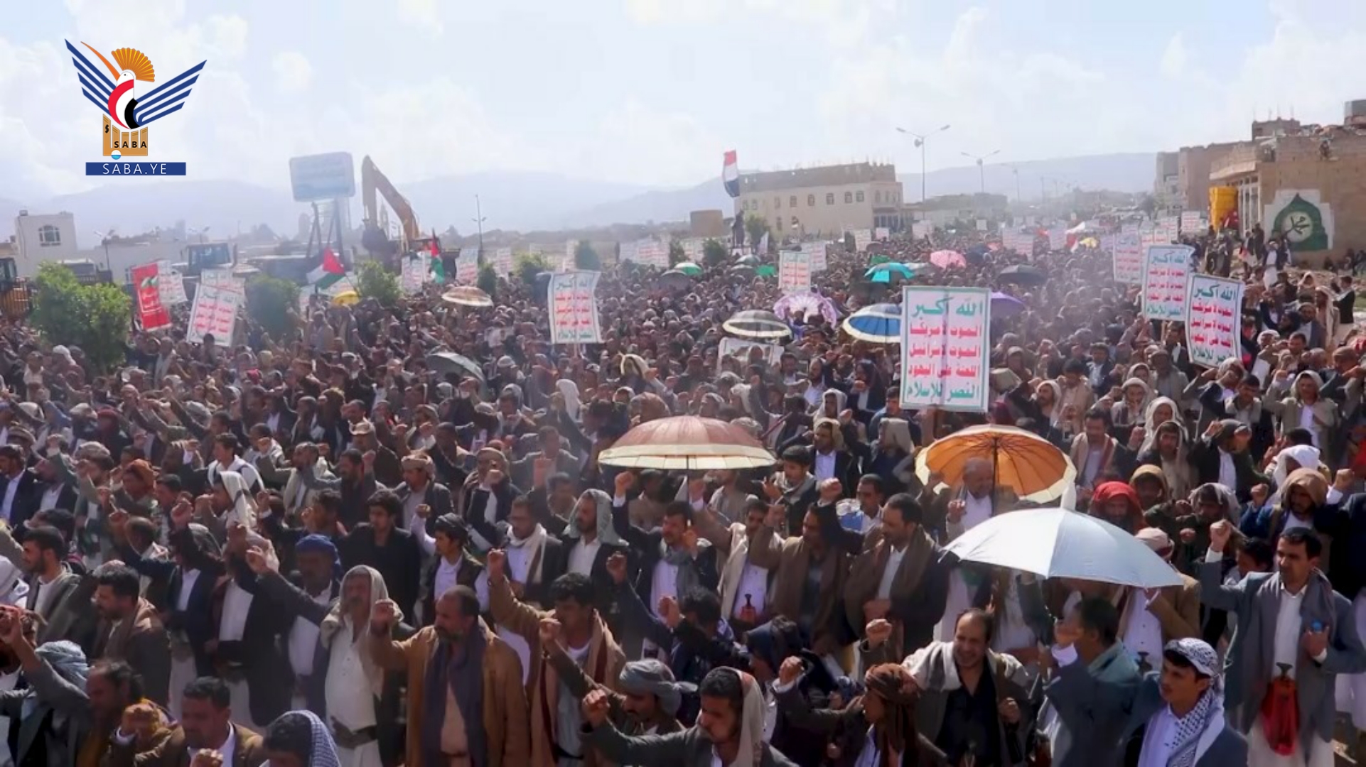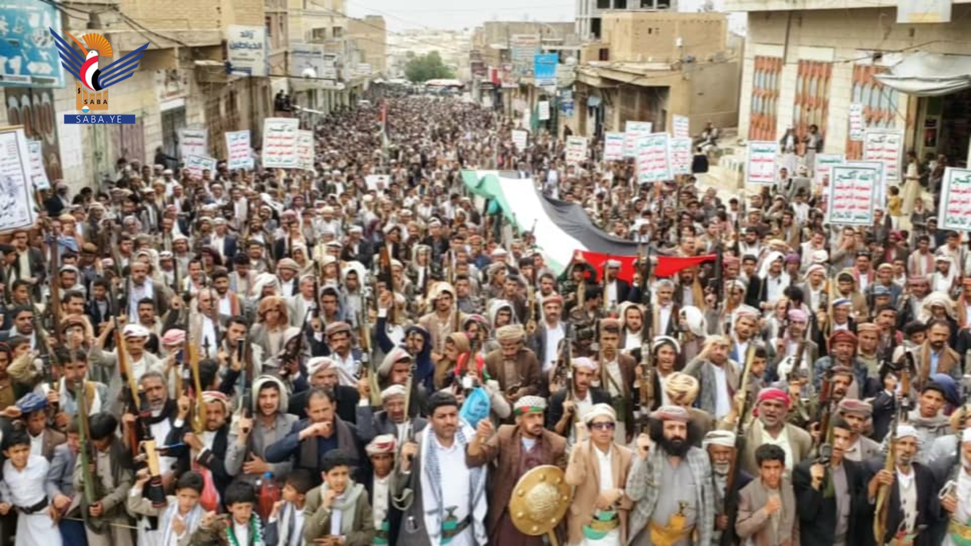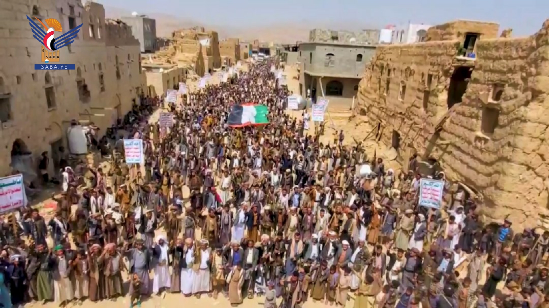 مسيرات حاشدة بمحافظة عمران بعنوان "مع غزة العزة .. تعبئة واستنفار"