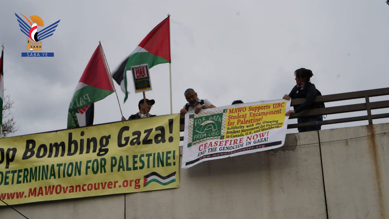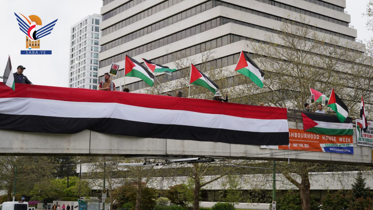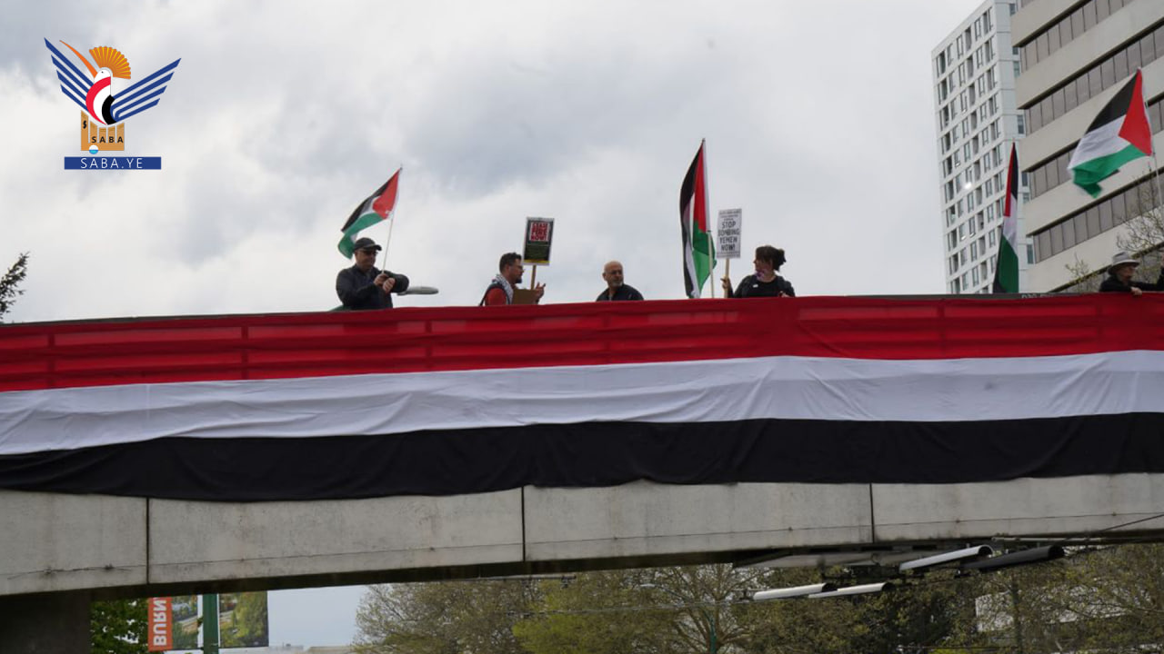 أقام مجموعة من الناشطين الحقوقيين ومنظمة ماو للسلام، الجمعة، وقفة احتجاجية في مدينة فانكوفر الكندية تحت شعار (إرفع الراية) تضامناً مع اليمن وغزة.