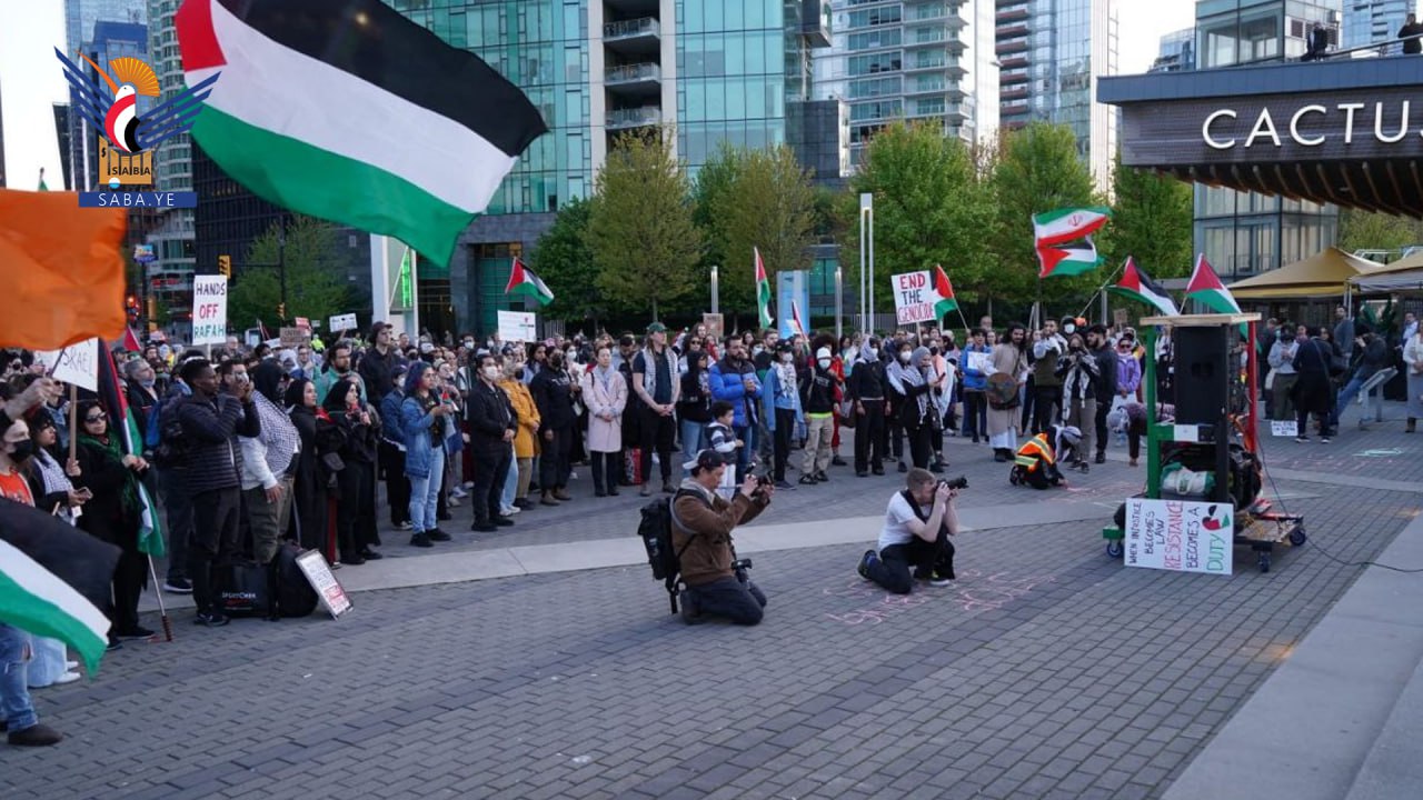 وقفة في مدينة فانكوفر الكندية تضامنًا مع رفح وغزة وجميع فلسطين واليمن