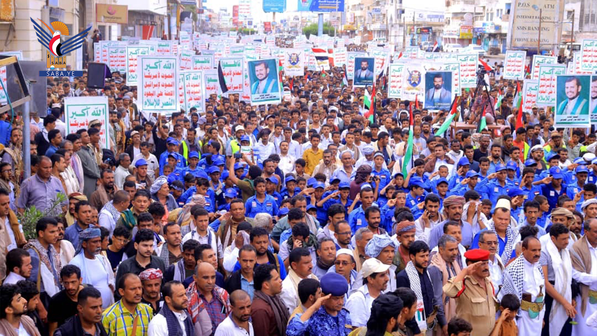 وأعلنت الحشود في المسيرة التي تقدمها المحافظ محمد قحيم ونائب وزير الخارجية حسين العزي، ووكيل أول المحافظة أحمد البشري ووكلاء المحافظة، الاستعداد لخوض الجولة الرابعة من التصعيد وتنفيذ كل التوجيهات والخيارات بجهوزية عالية، وخبرات قتالية، وثقة مطلقة بالله ونصره وتأييده لمواجهة أعداء اليمن وفلسطين والأمة الاسلامية جمعاء.