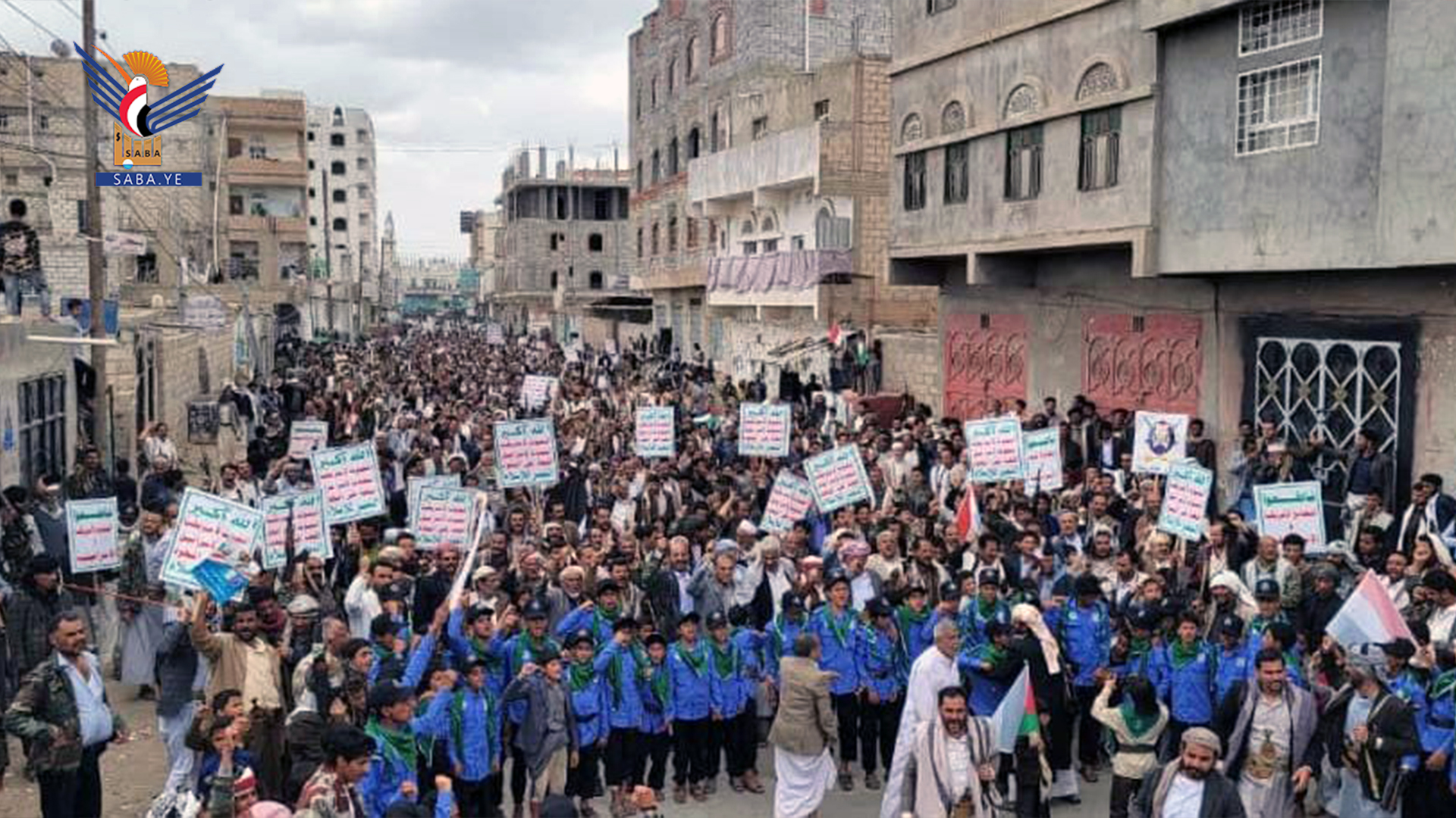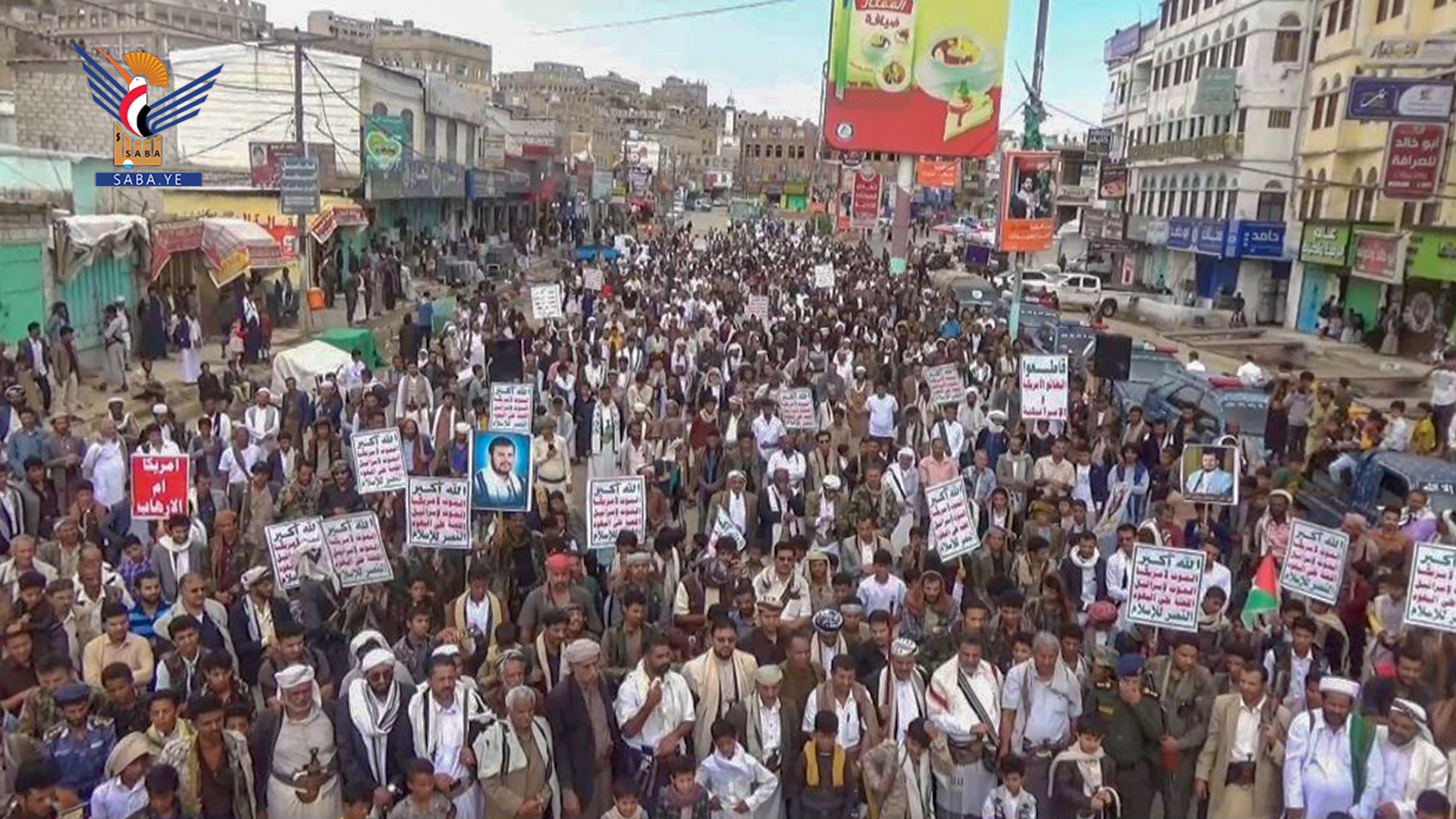 شهدت مديريات محافظة البيضاء، اليوم، مسيرات ووقفات جماهيرية نصرة للشعب الفلسطيني وتنديداً بمجازر العدو الصهيوني تحت شعار "التصعيد بالتصعيد مع غزة حتى النصر".