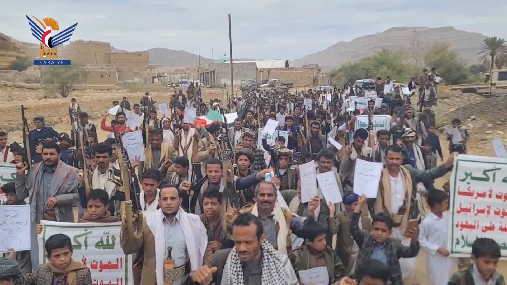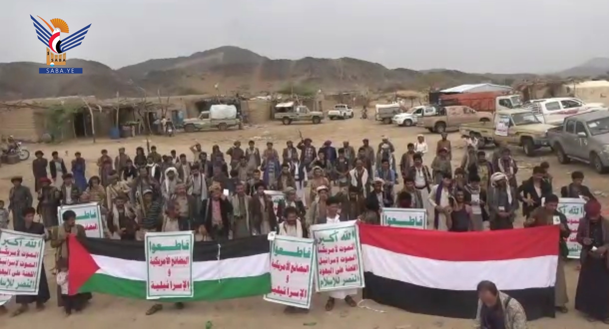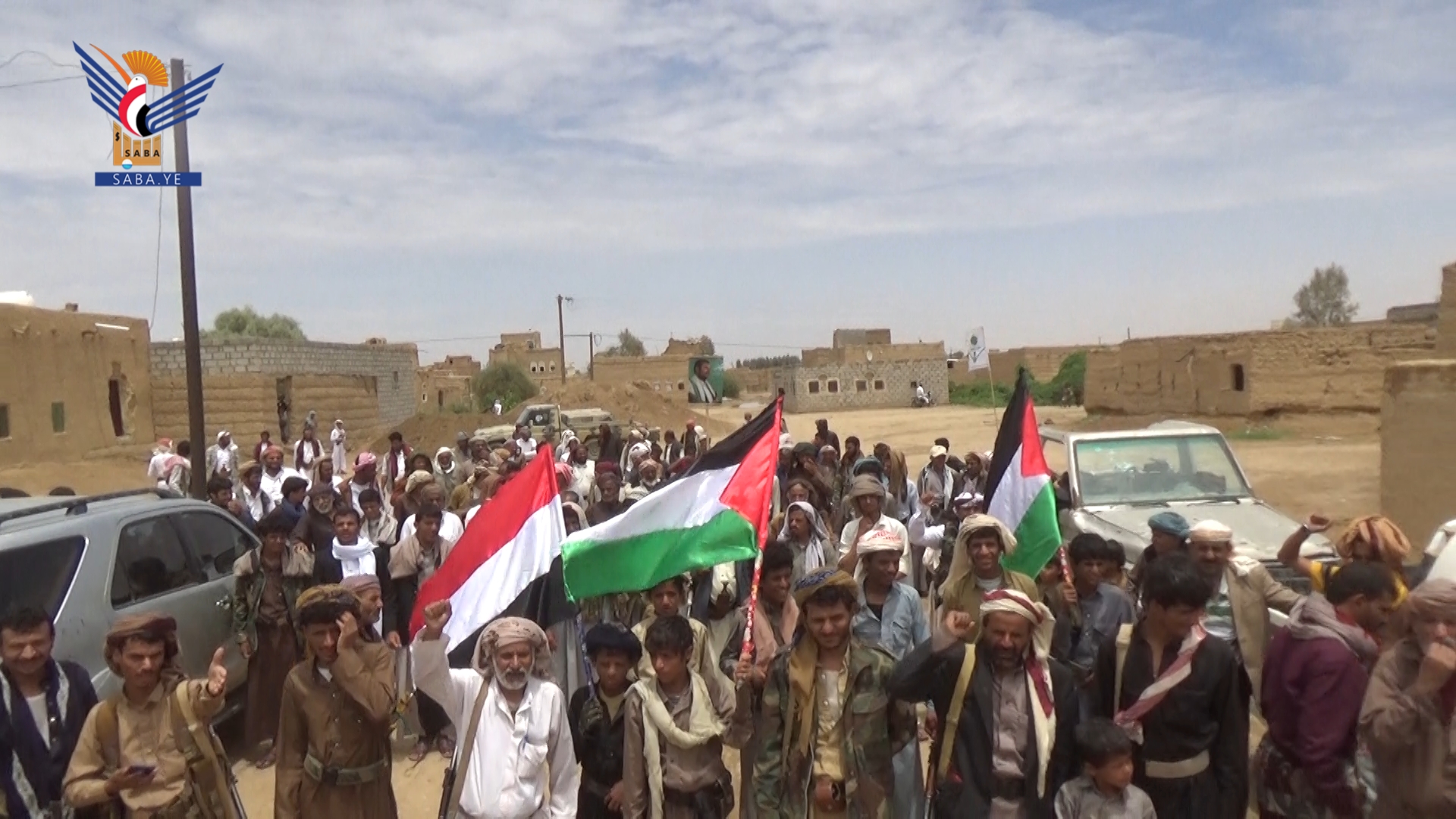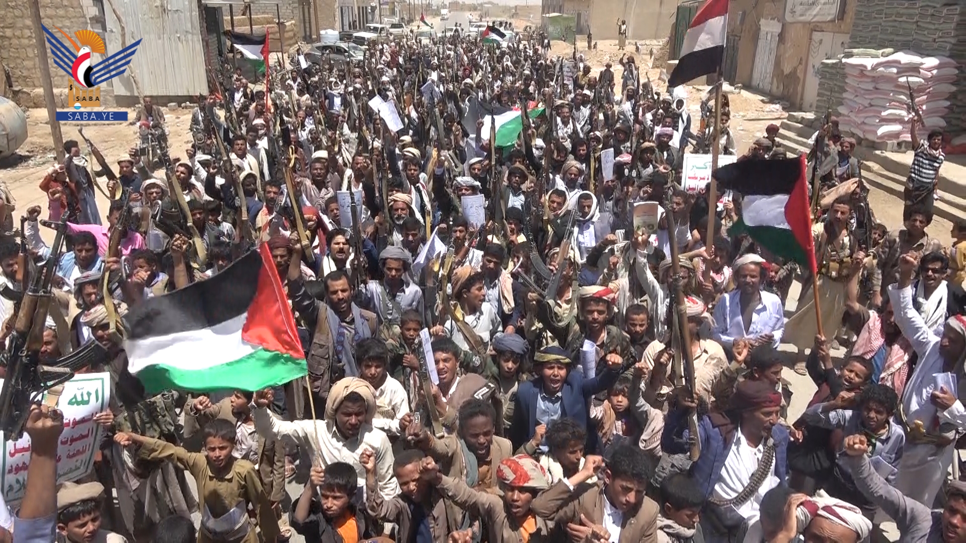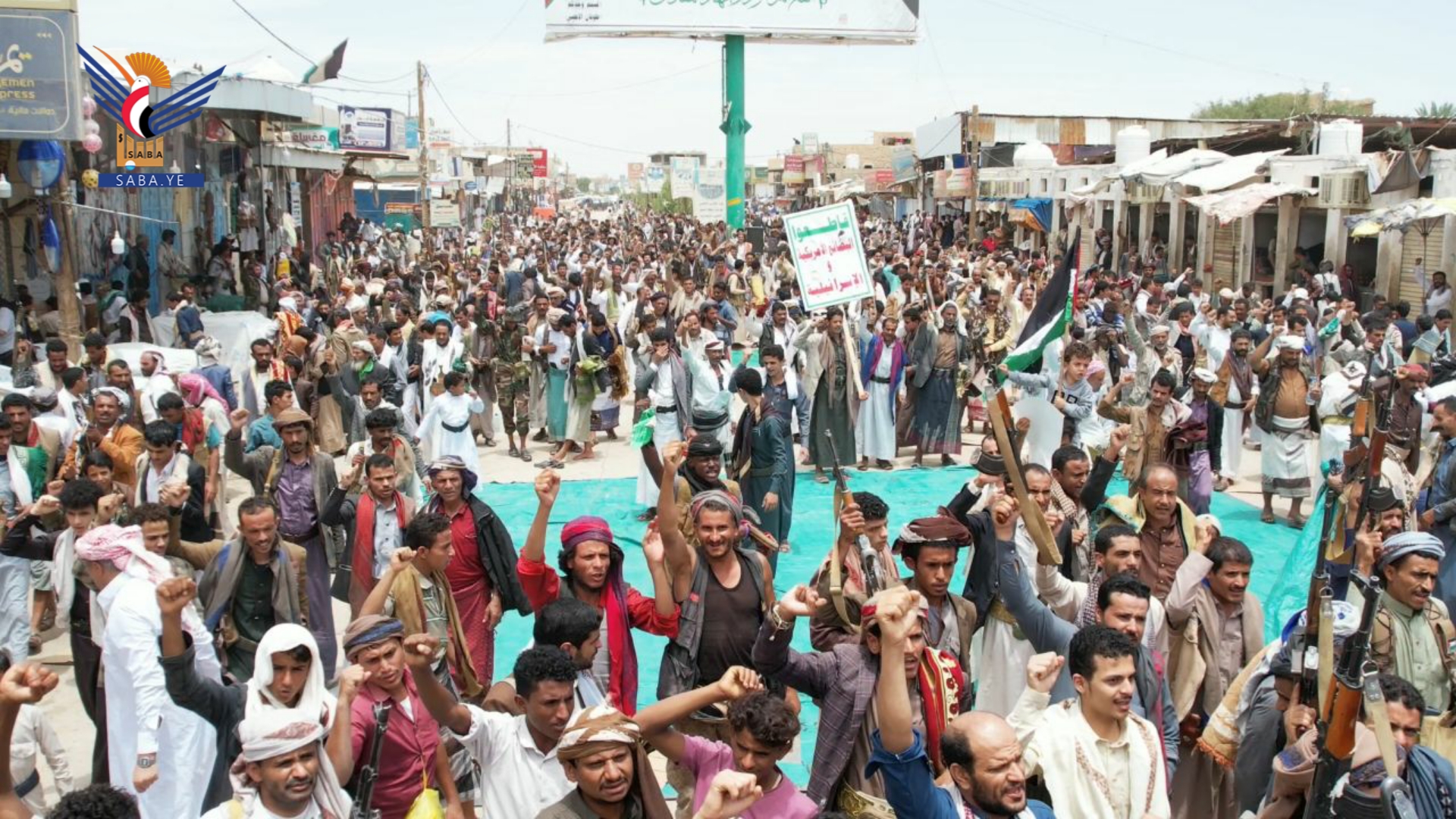 ففي مدينة الحزم خرجت مسيرة جماهيرية وفاءً للشعب الفلسطيني، أكد خلالها المشاركون الاستمرار في التصعيد ضد الكيان الصهيوني - الأمريكي - البريطاني؛ نصرة للشعب الفلسطيني.
